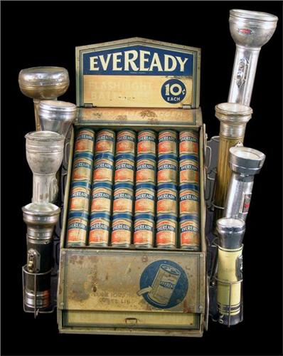 Metal Eveready Flashilight Display with 8 flashlights & tester