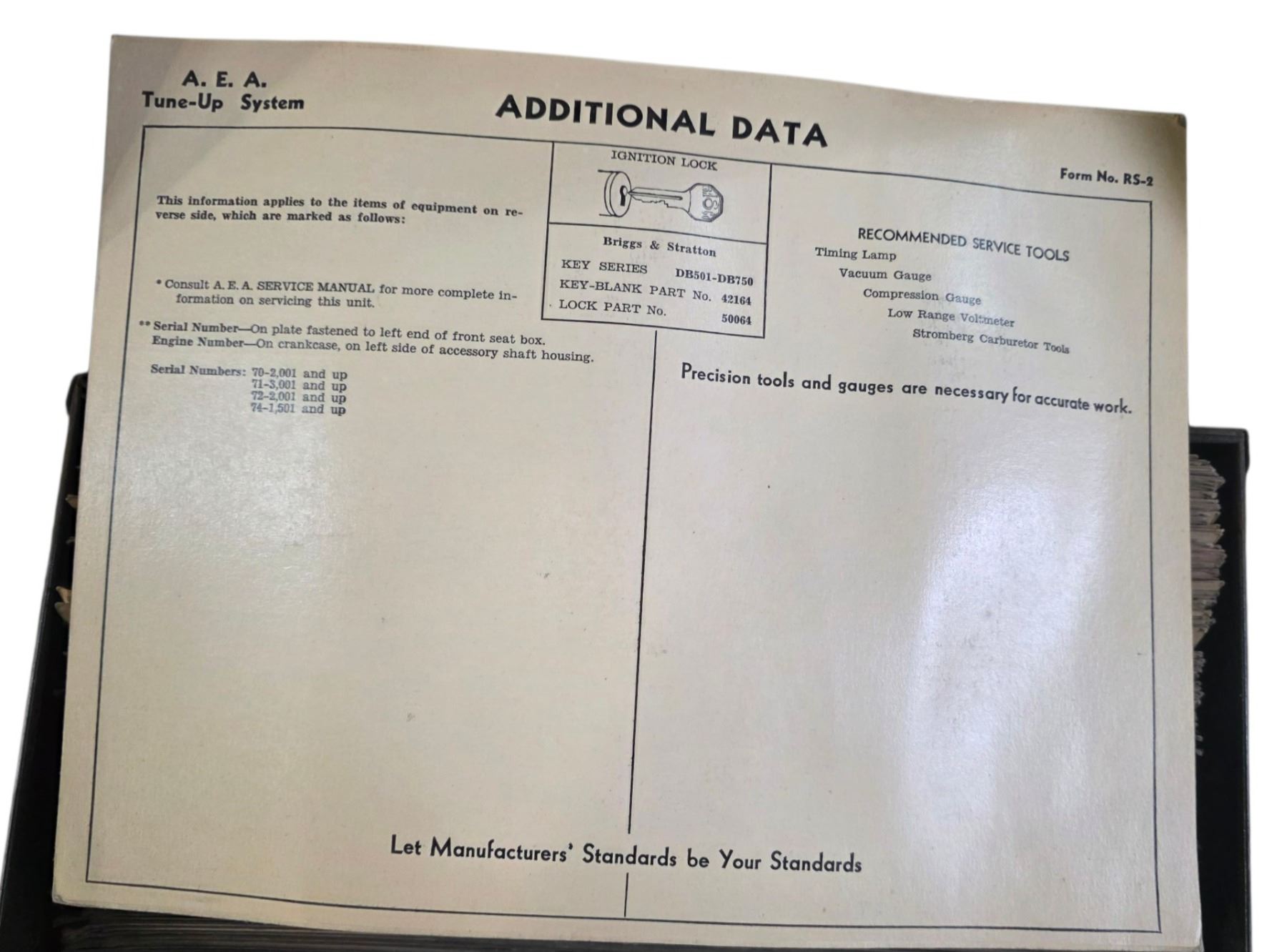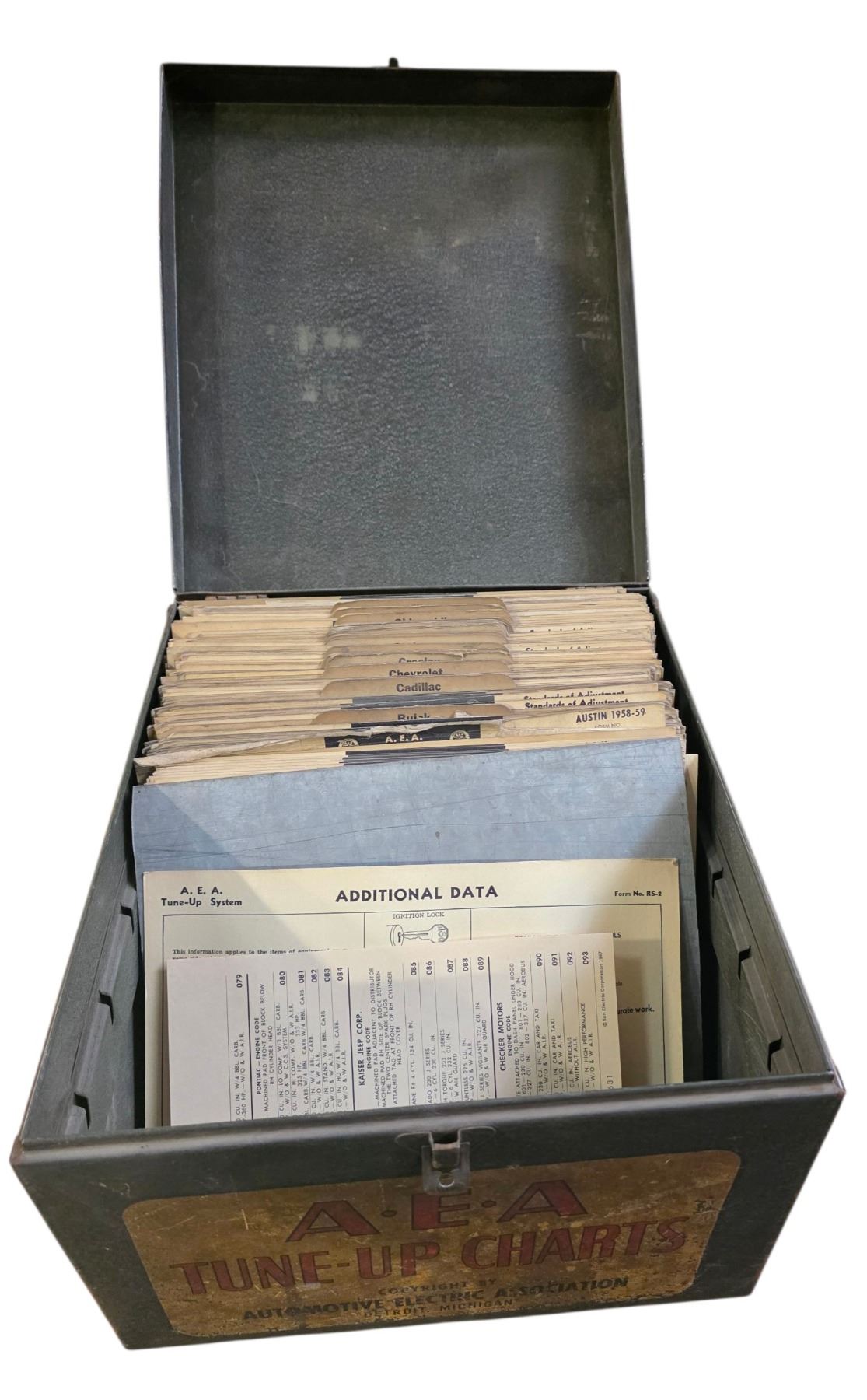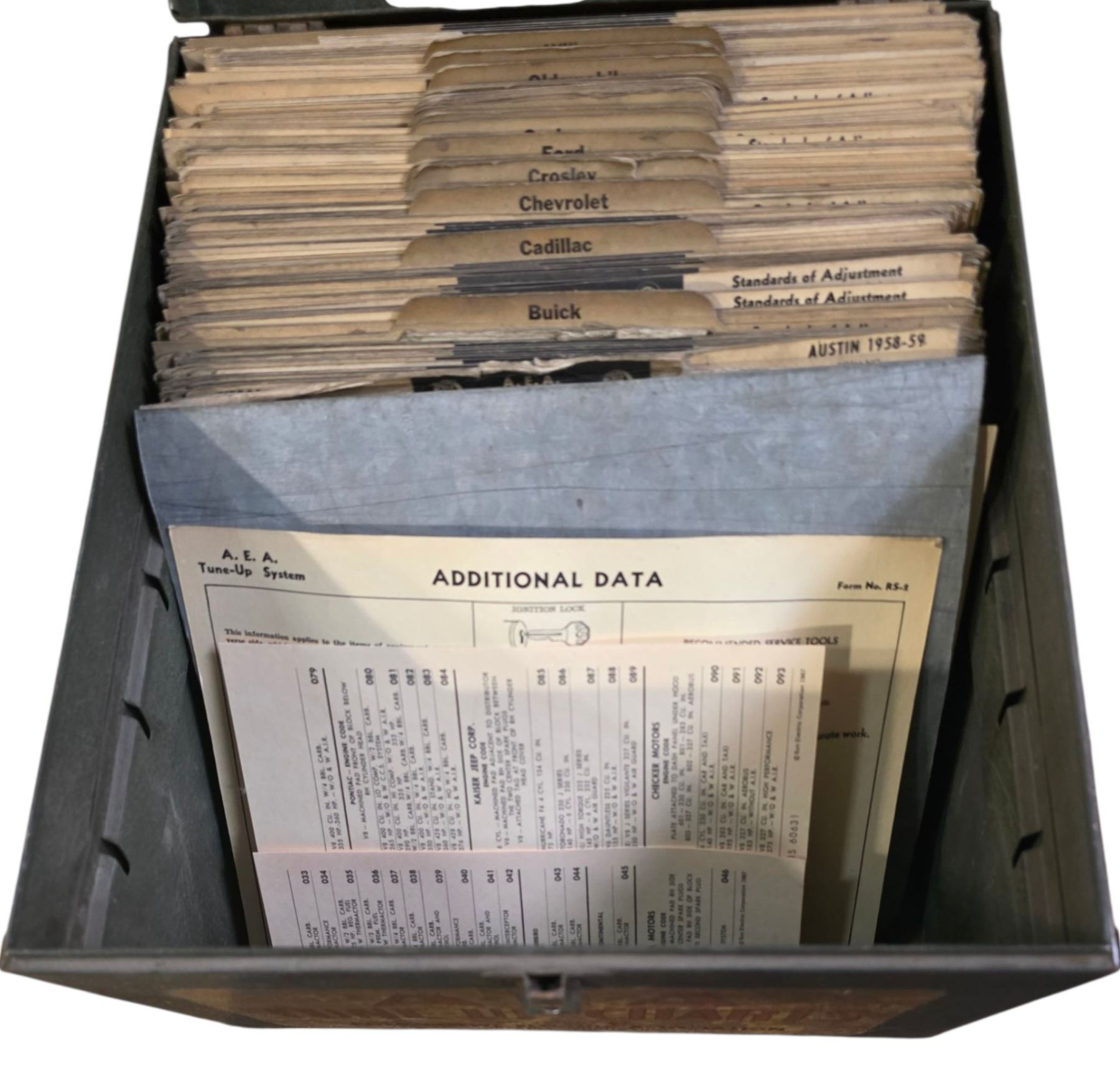 Metal File Box Full of 1940s & 1950s Automotive "Standards of Adjustment" Sheets