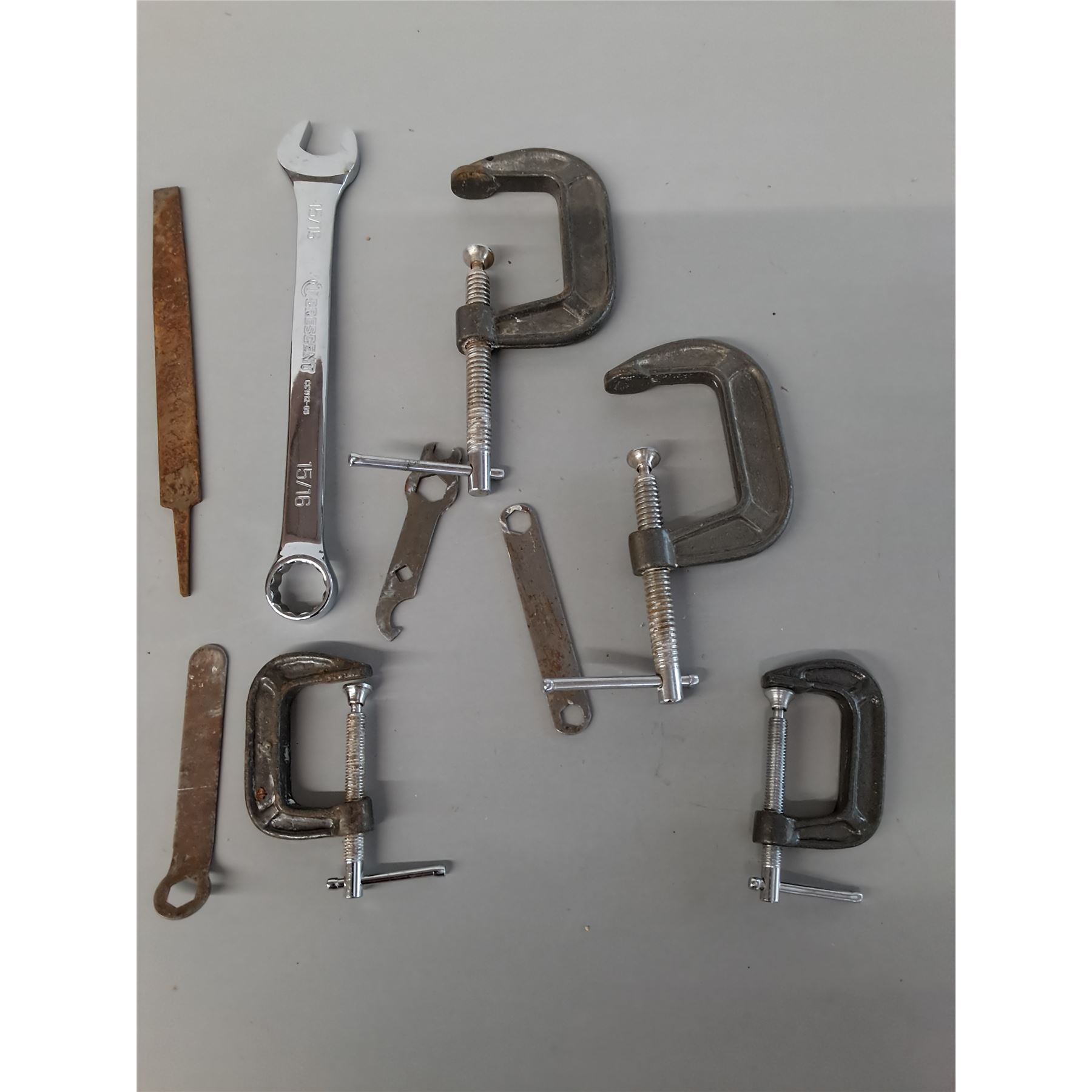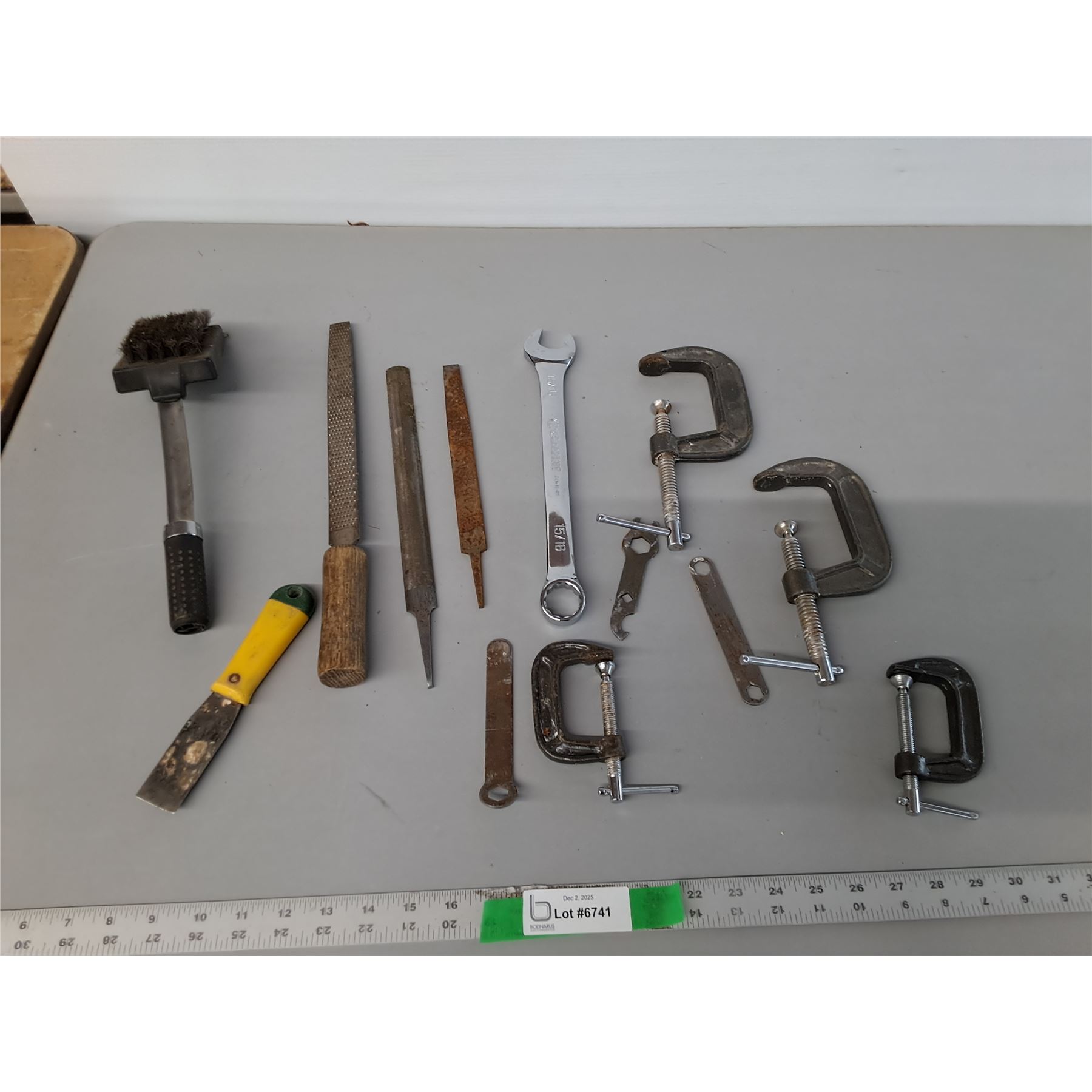 Metal Files, C Clamps, 15/16 Wrench, Misc.