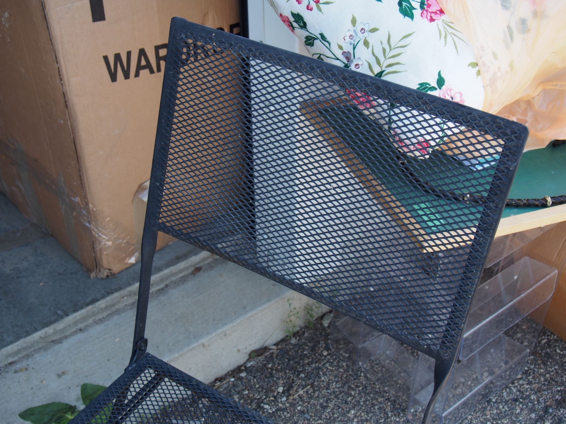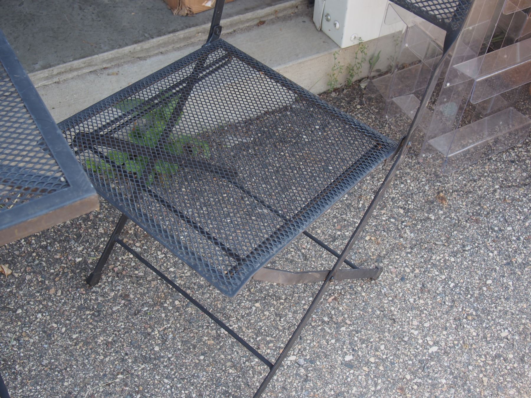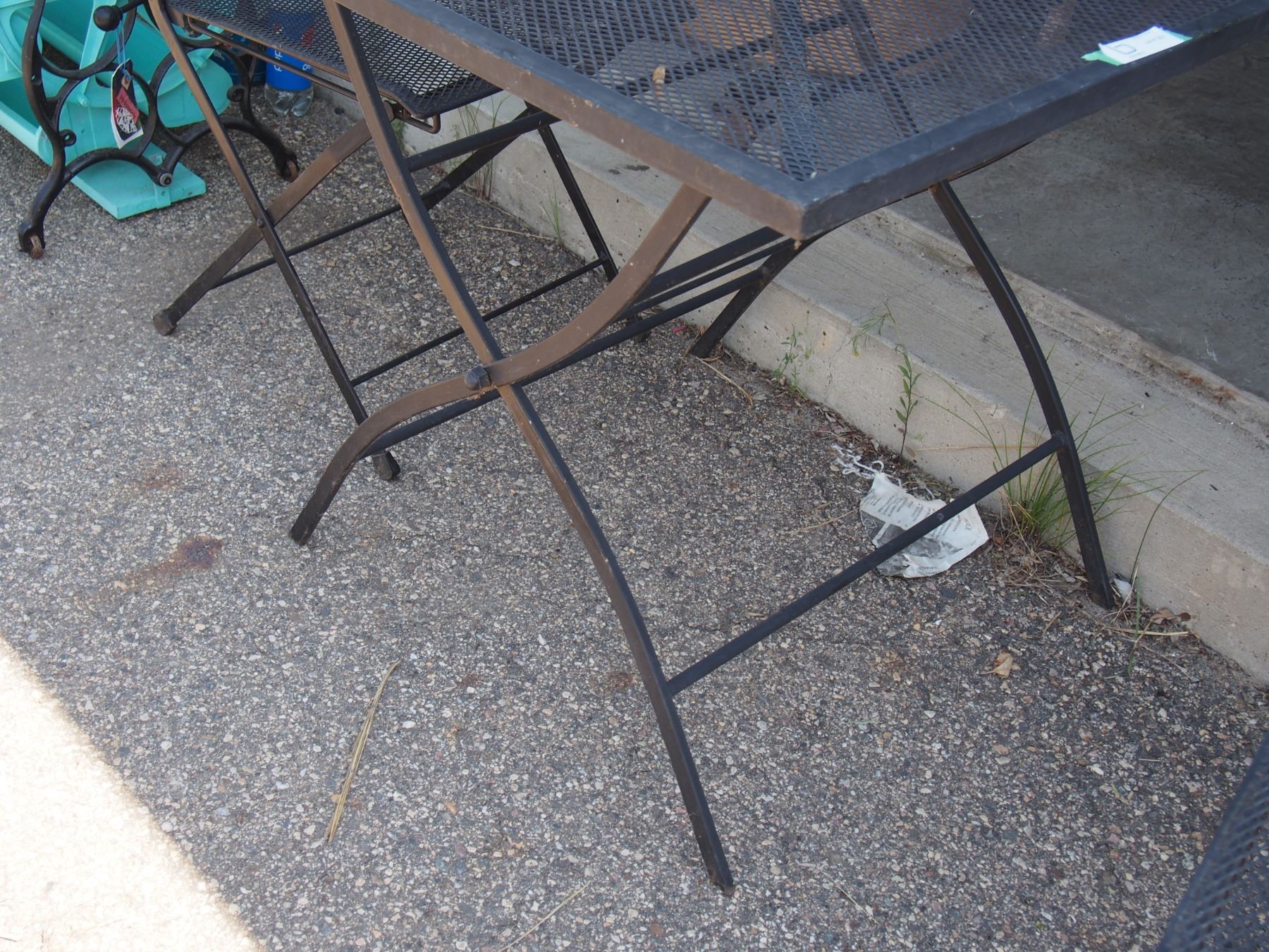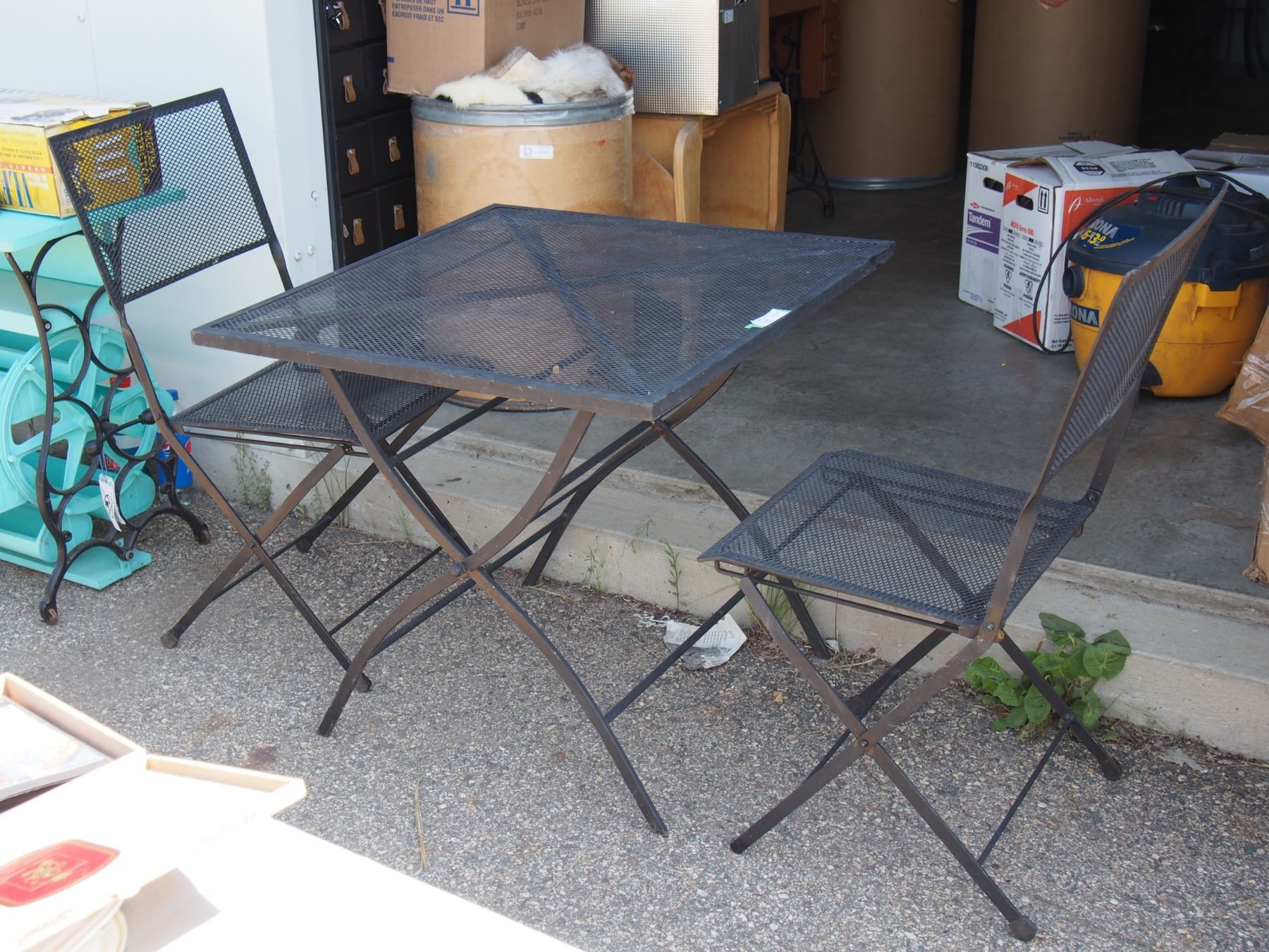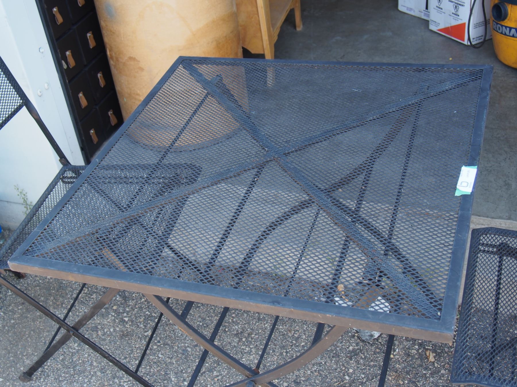 Metal Folding Grate Table and 2 Chairs 30 by 30 by 28"