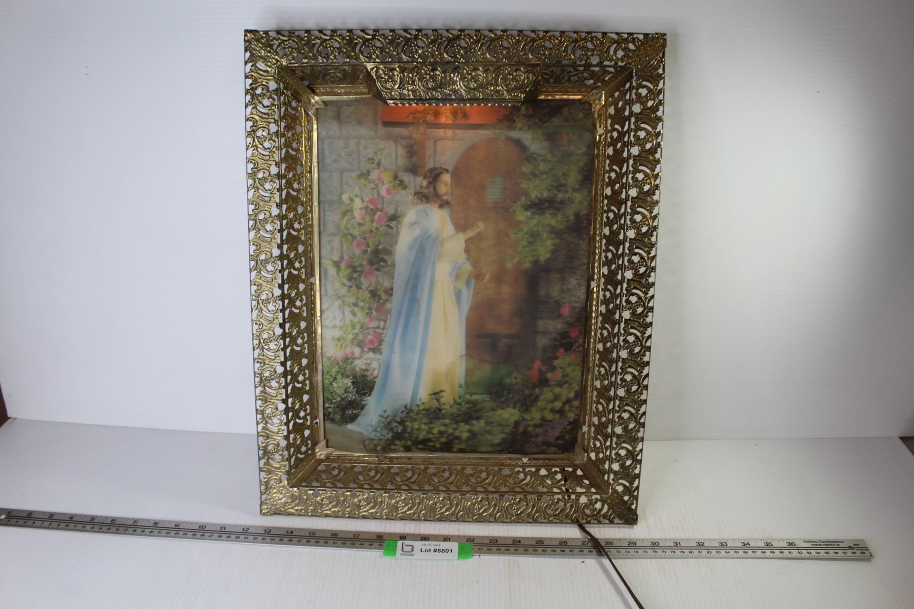 Metal Framed 3-D Picture of Jesus - (light works - 17" - 21")