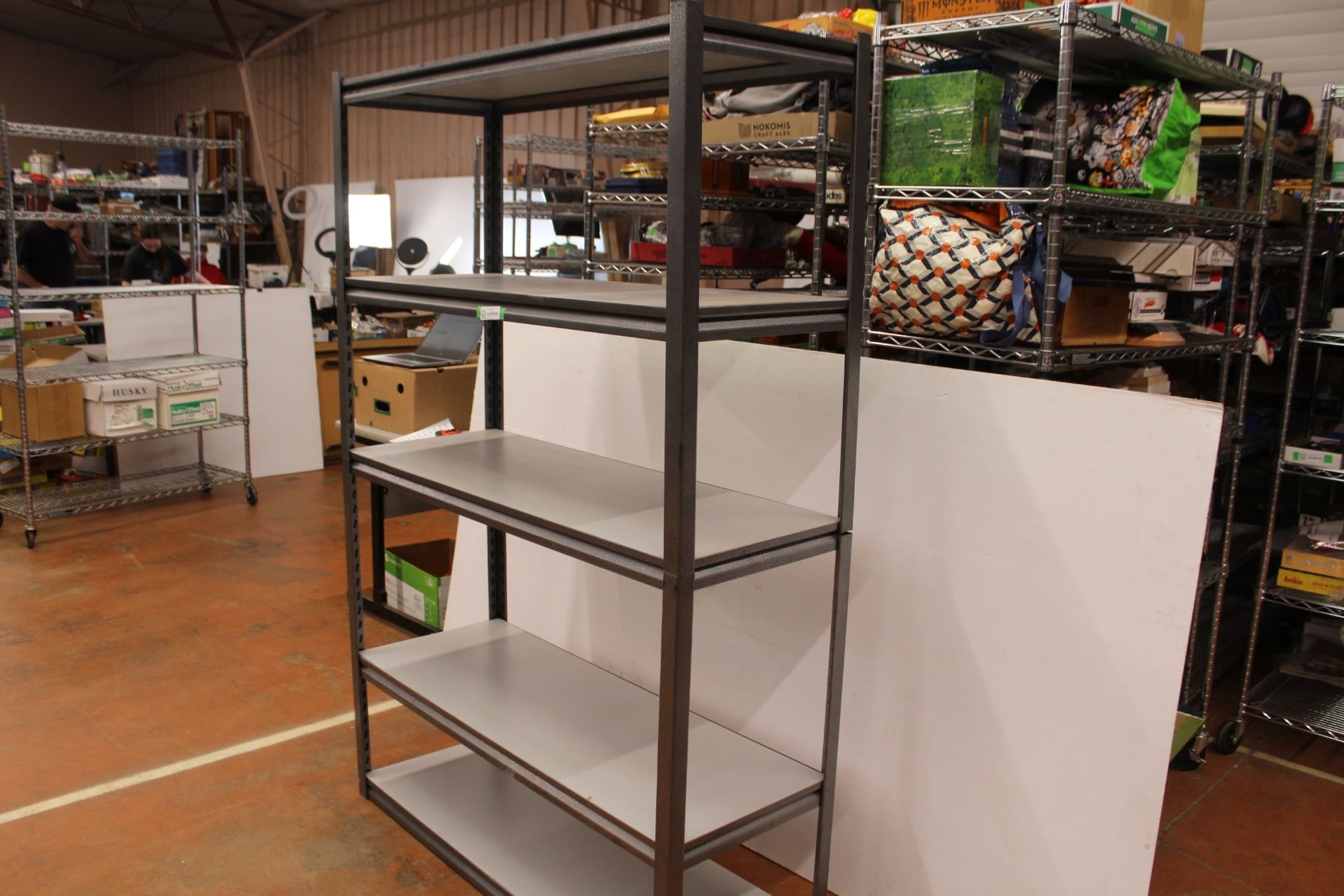 *Metal Framed Wooden Shelves ( 48"w x 17 1/2"d x 72" h)