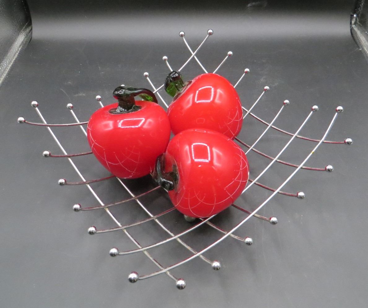 Metal Fruit Dish Holder With 3 Glass Display Apples