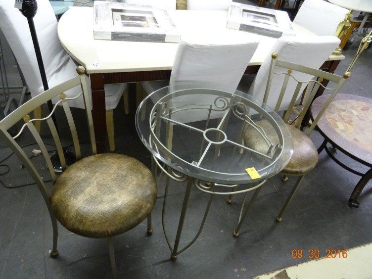 Metal Glasstop Round Settee w/2 Snakeskin Style Padded Chairs
