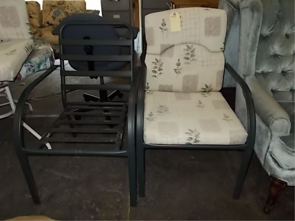 Metal Lawn Chairs With Strap & Cushions good condition both chairs in good condition as is the cushions.