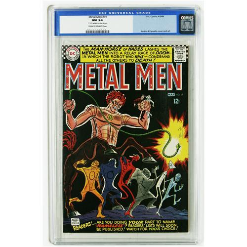 <B>Metal Men #19 (DC, 1966) CGC NM 9.4 Cream to off-white pages.</B></I> Ross Andru and Mike Esposito cover and art. Overstreet 2006 NM- 9.2 value = $95. CGC census 4/06: 2 in 9.4, none higher.