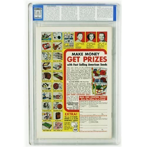 are sold ³as is² without any express or implied warranty. Certain warranties may be available from the grading services and the Bidder is referred to them for further details: Comics Guaranty Corporation (CGC), P.O. Box 4738, Sarasota, FL 34230. Subject to sections 57 and 58, bidders who intend to challenge authenticity or provenance of a lot must notify Auctioneer in writing within thirty (30) days of the Auction¹s conclusion. Auctioneer¹s maximum liability shall not exceed the high bid on that lot, which bid shall be deemed for all purposes the value of the lot. In the event Auctioneer cannot deliver the lot or subsequently it is established that the lot lacks title, provenance, authenticity, or other transfer or condition issue is claimed, Auctioneer¹s liability shall be limited to recission of sale and refund of purchase price. After one year has elapsed, Auctioneer¹s maximum liability shall be limited to any commissions and fees Auctioneer earned on that lot.