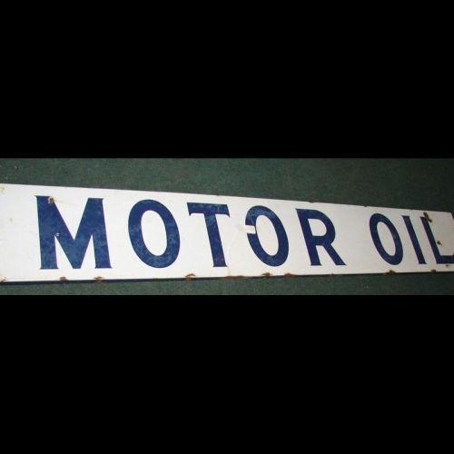 Metal Motor Oil Sign Measuring 11x6 Ft. some chips in the enamel.