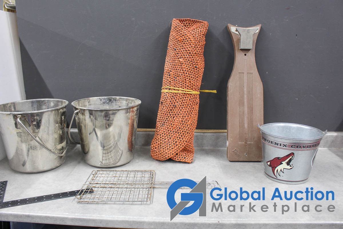 Metal Pails, Plastic Fish Skining Board, BBQ Basket, Rug, etc