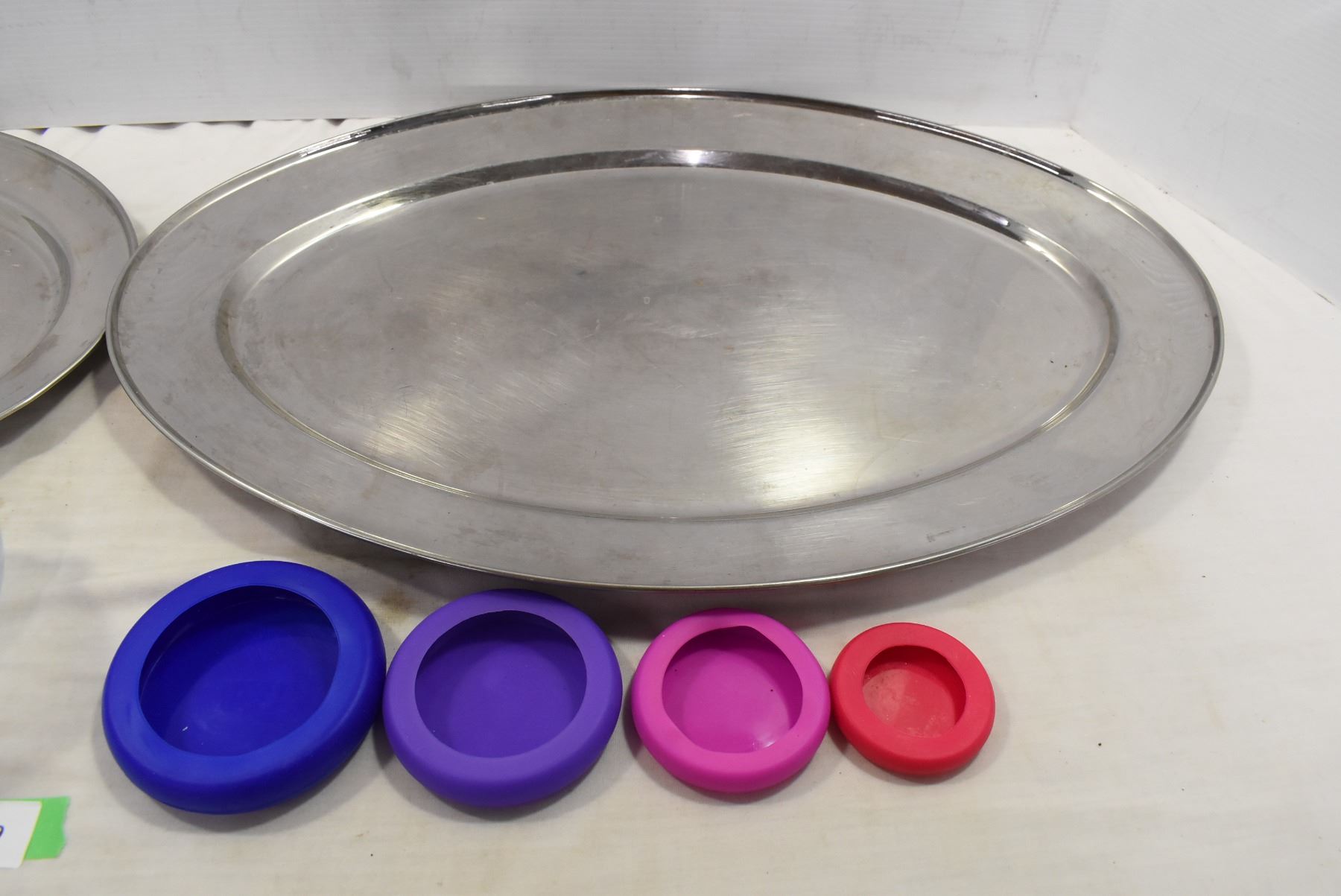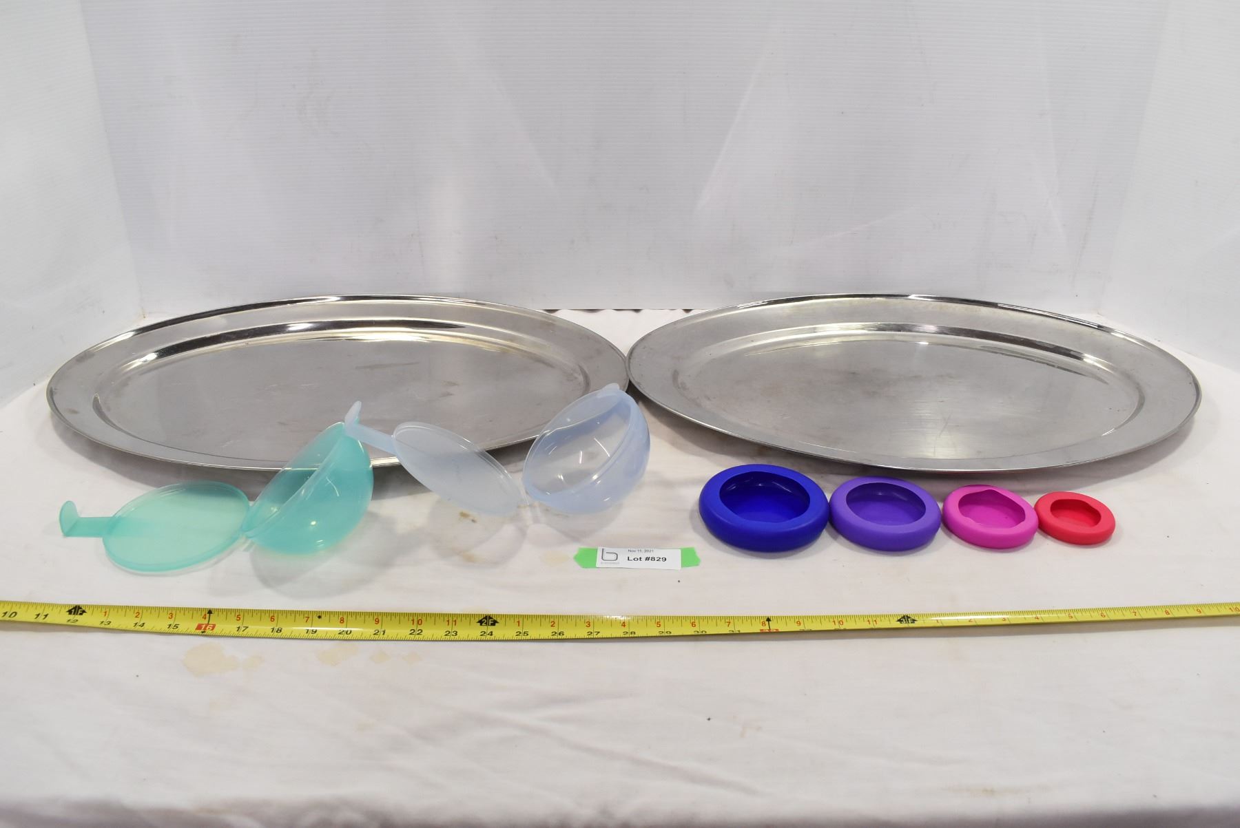 Metal Serving Trays w/ Kitchen Items(tupperware)