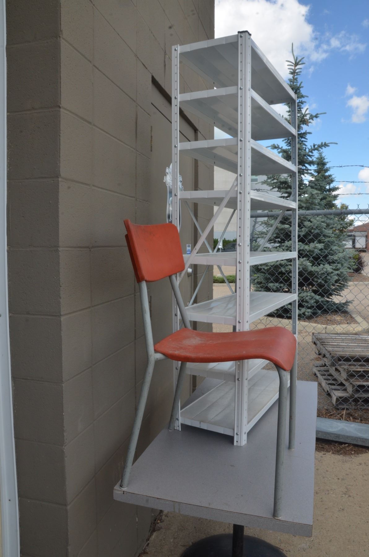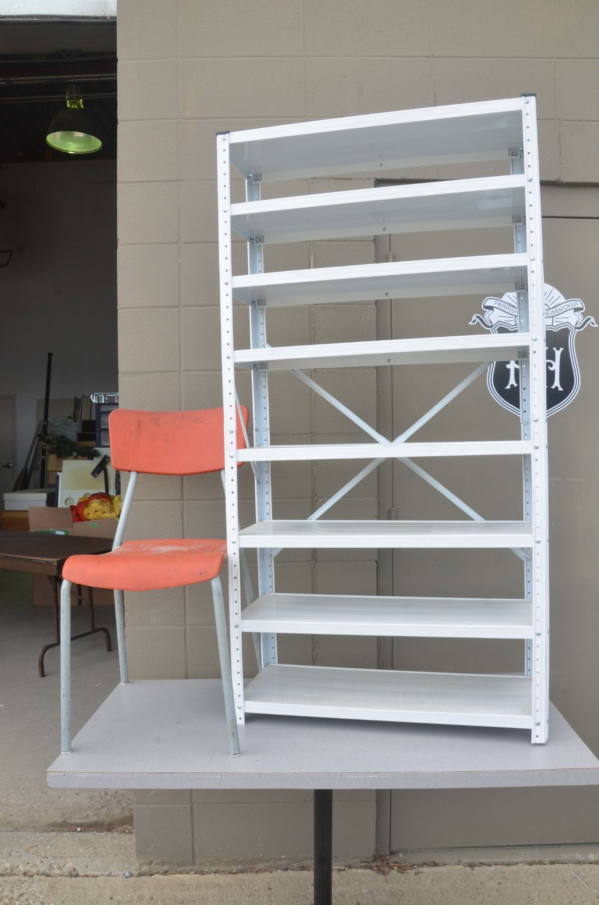 Metal Shelf (58"h x 30"w x 12"D) and Chair