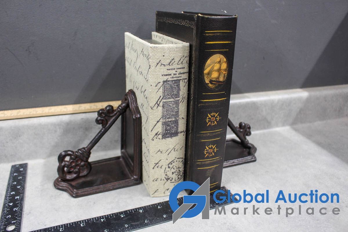 Metal Skeleton Key Bookends, Fake Book Storage Boxes and Other Books