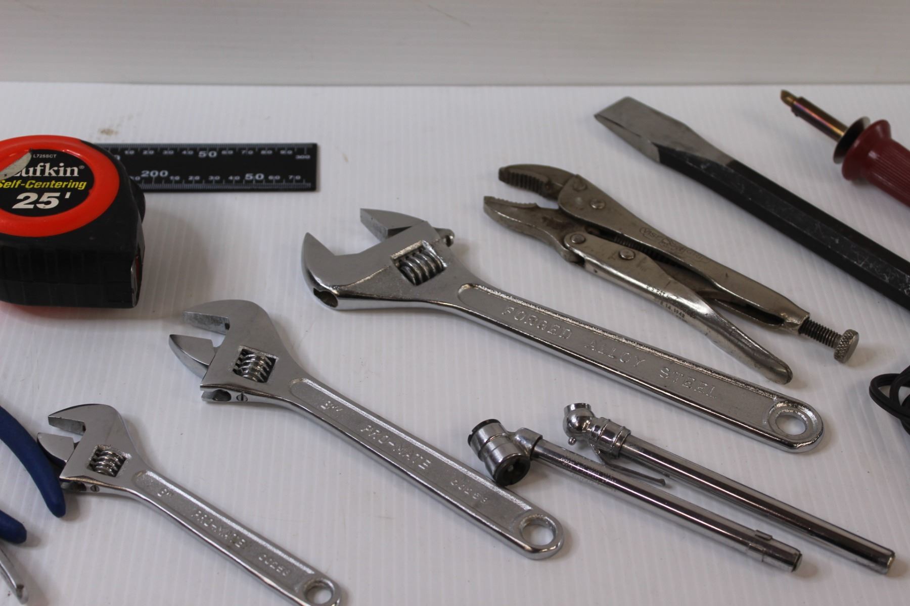 Metal Square, Measuring Tape, Adjustable Wrenches, Soldering Tool, Pilers & Chisel, Tire Testers
