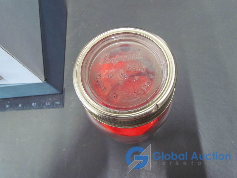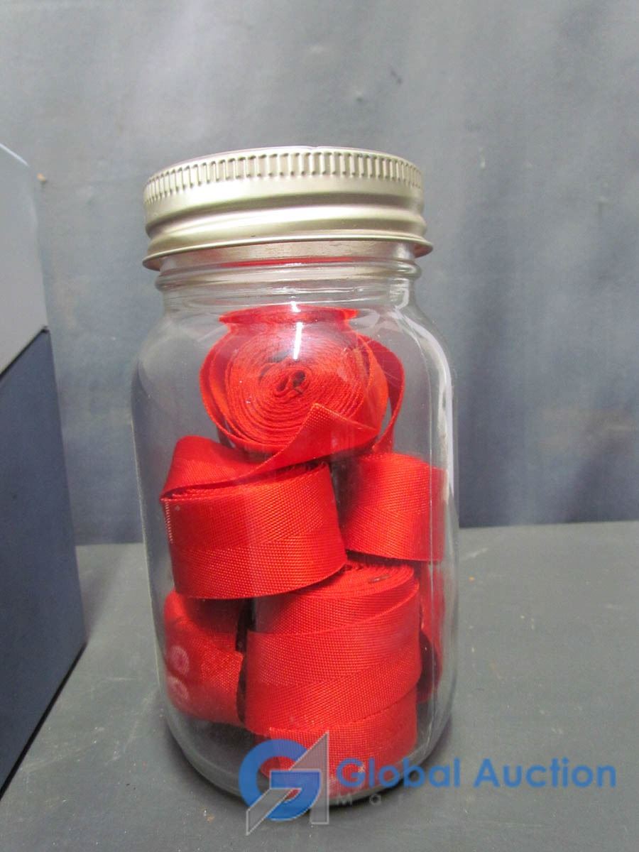 Metal Storage Box and Jar of Military Red Webbing