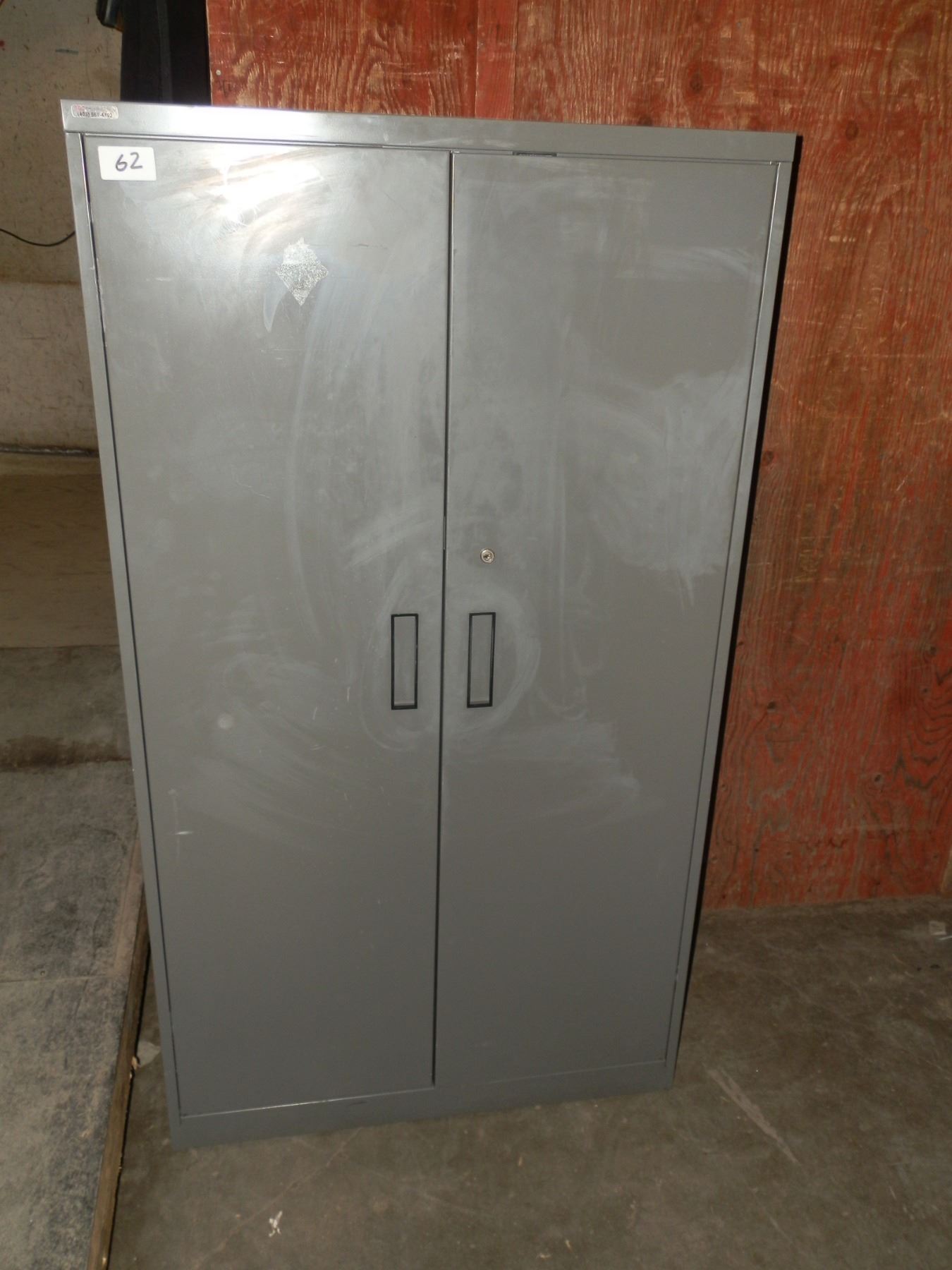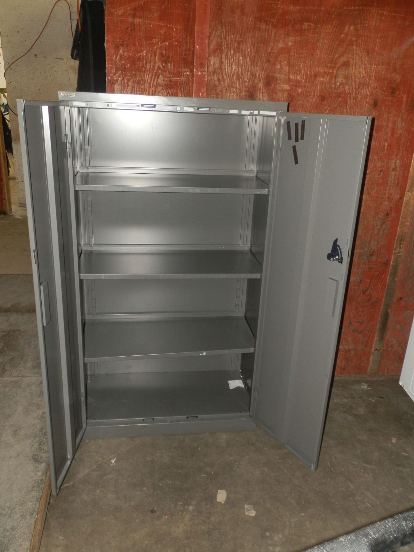 Metal Storage Cabinet, has 4 shelves, 63" 3/4 Height, 3 foot Long 18" Deep, in good condition...Used