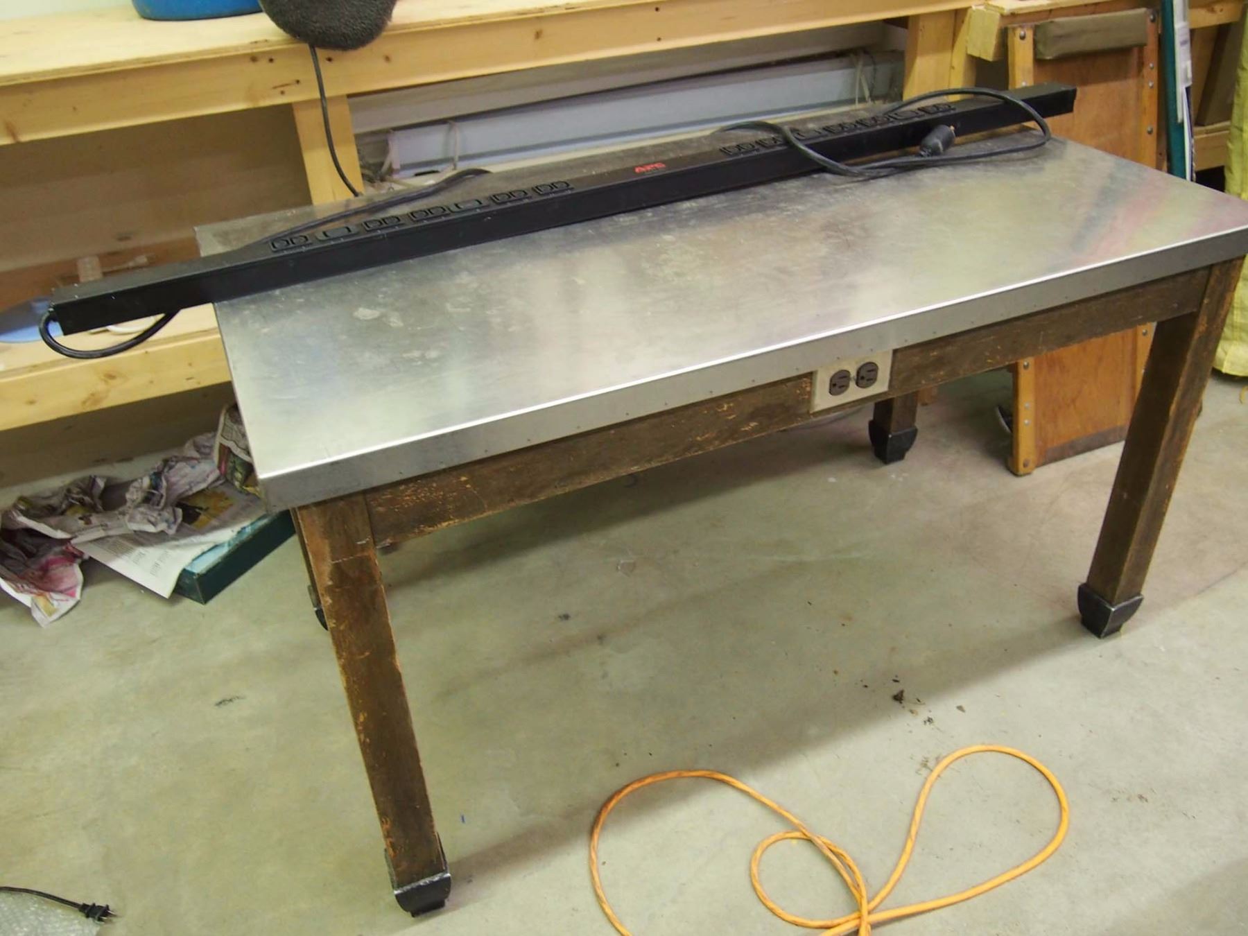 Metal Table With Electrical Outlets Built in, With Power Bar