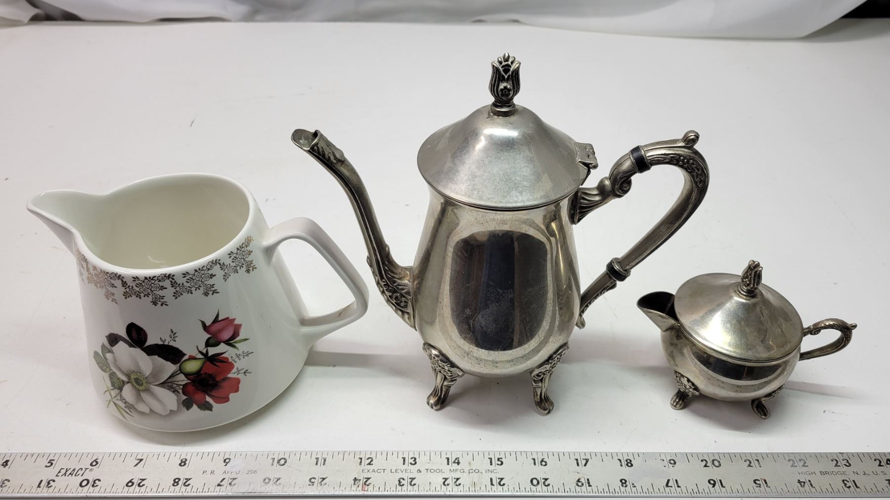 Metal Teapot/Creamer with Lord Nelson Pottery Pitcher