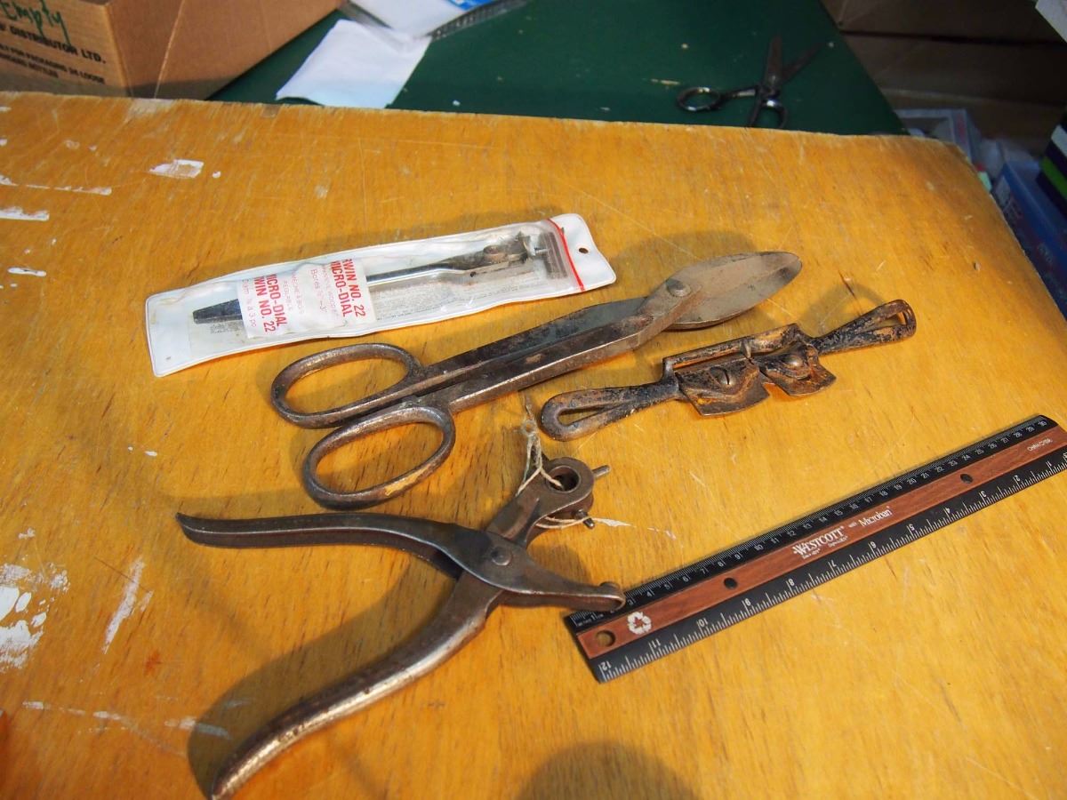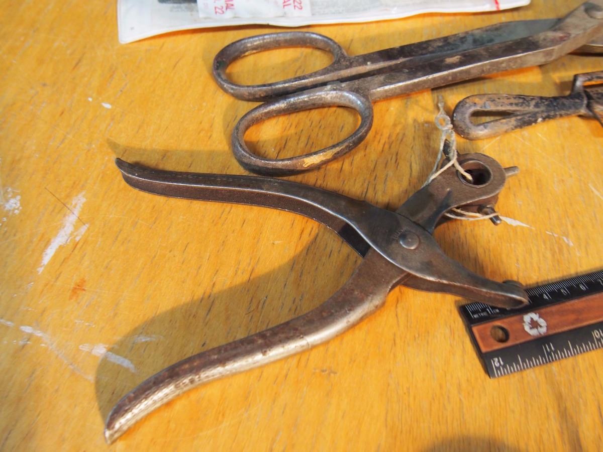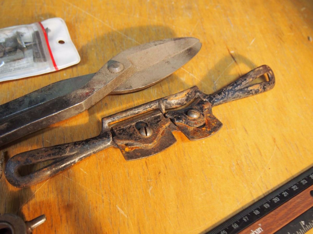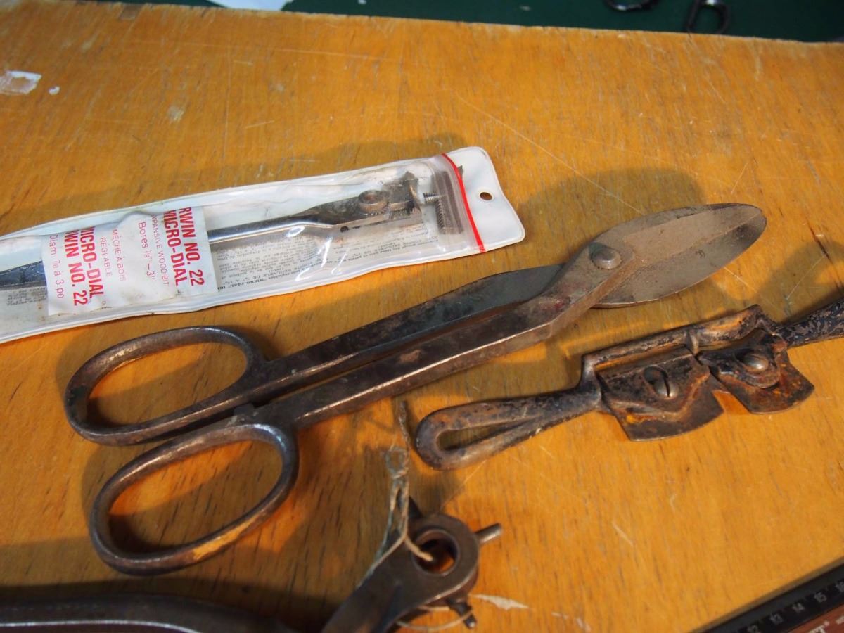 Metal Tin Snips, Dual Spoke Shave Erwin #22, Microdial Expansive Woodbit. Hole Punch Tool