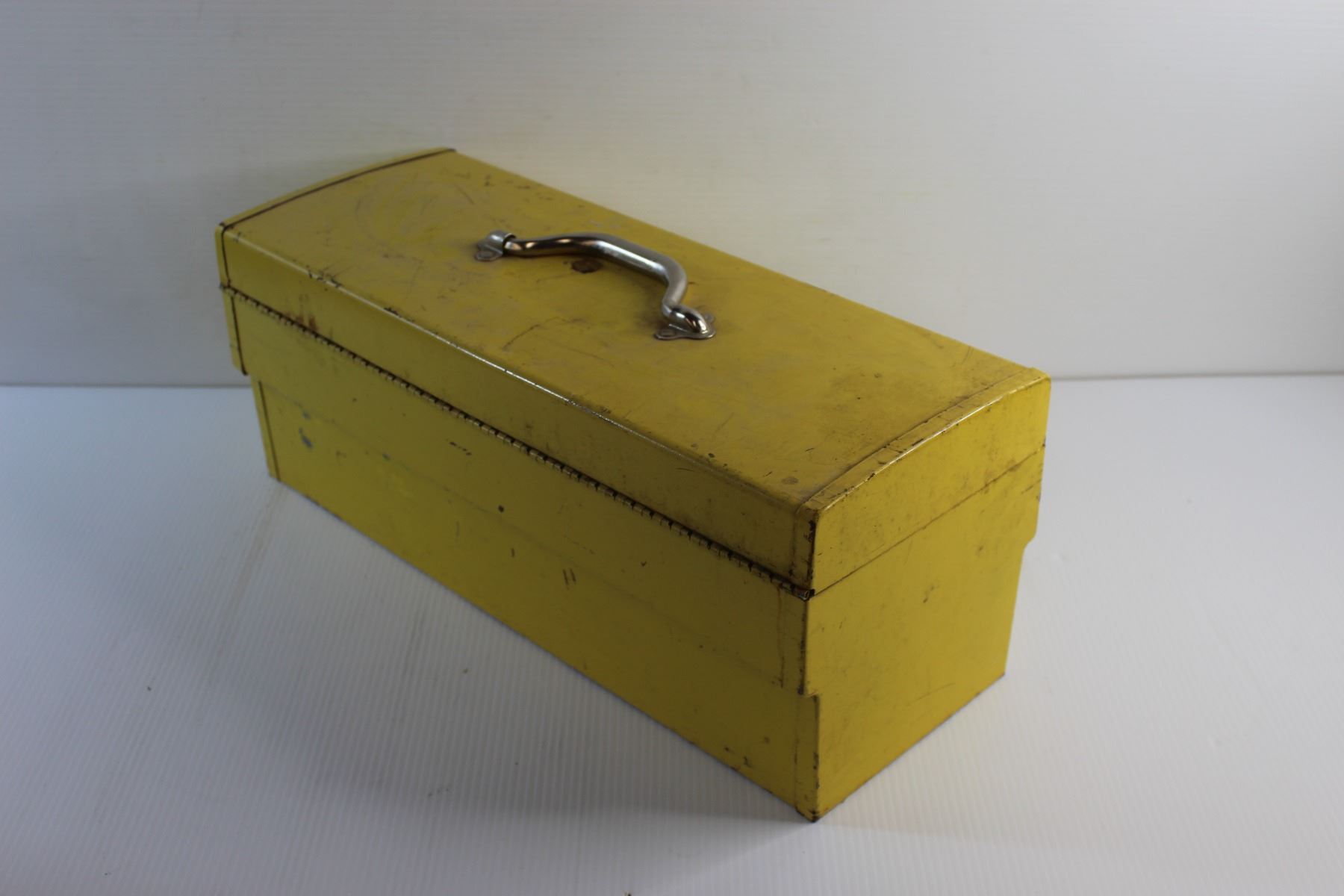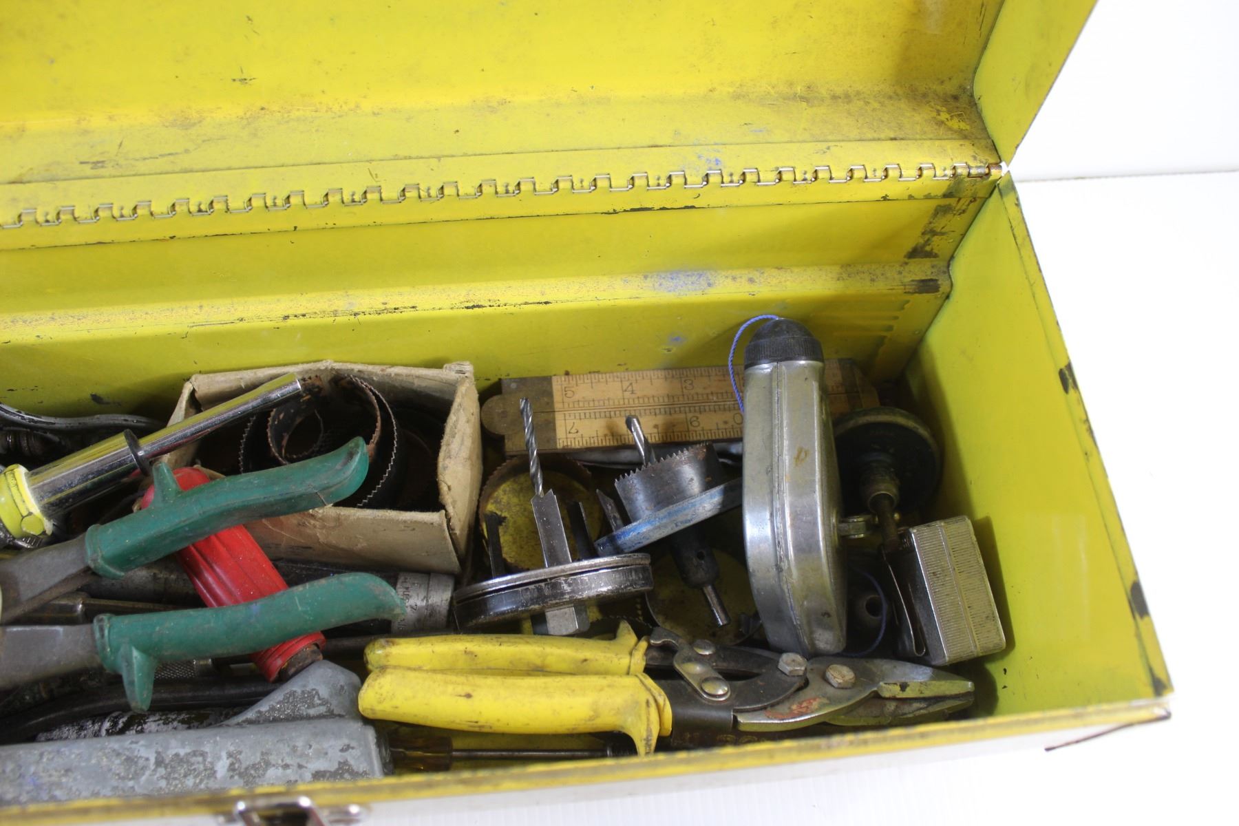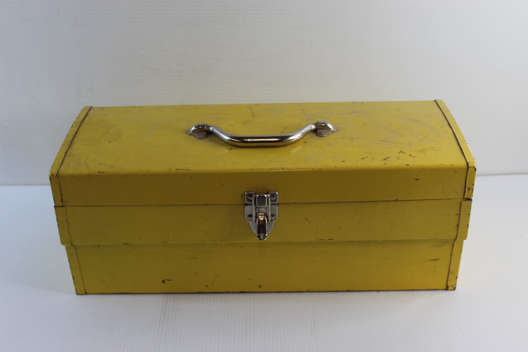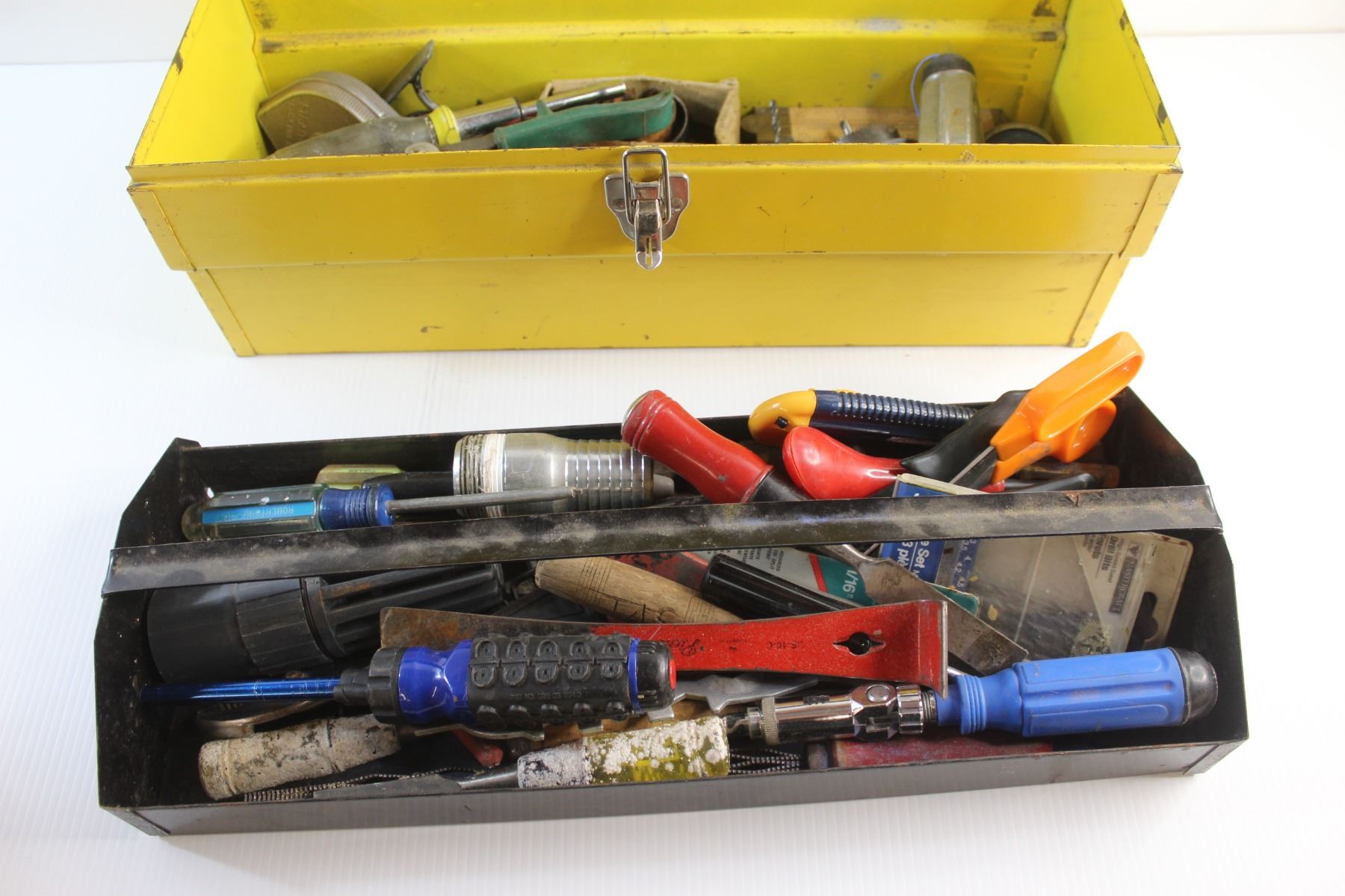 Metal Tool Box 19'' x 7 1/2'' x 7 1/2'' , Screwdrivers, Box Cutters, Chalkline, Wire Strippers and M