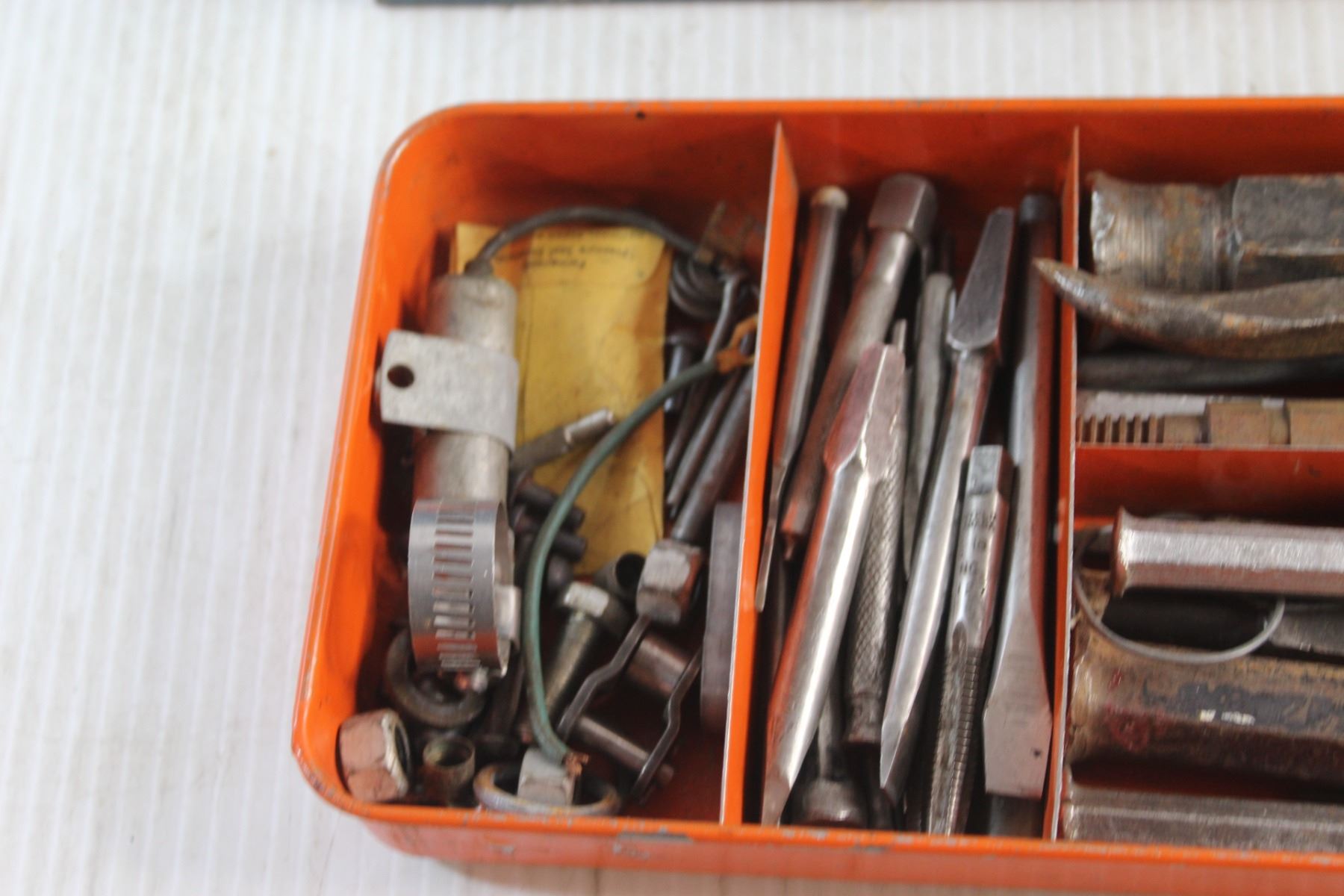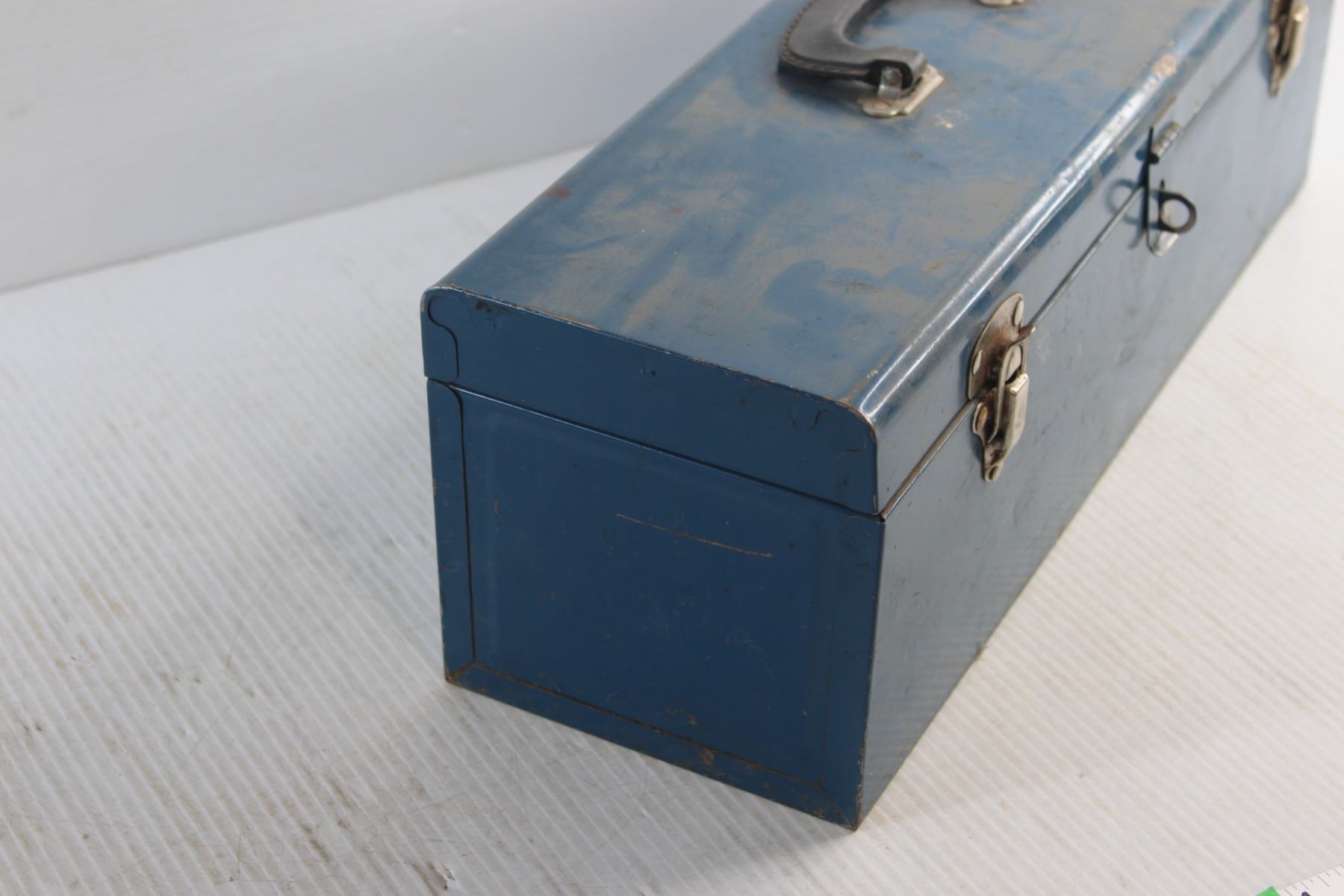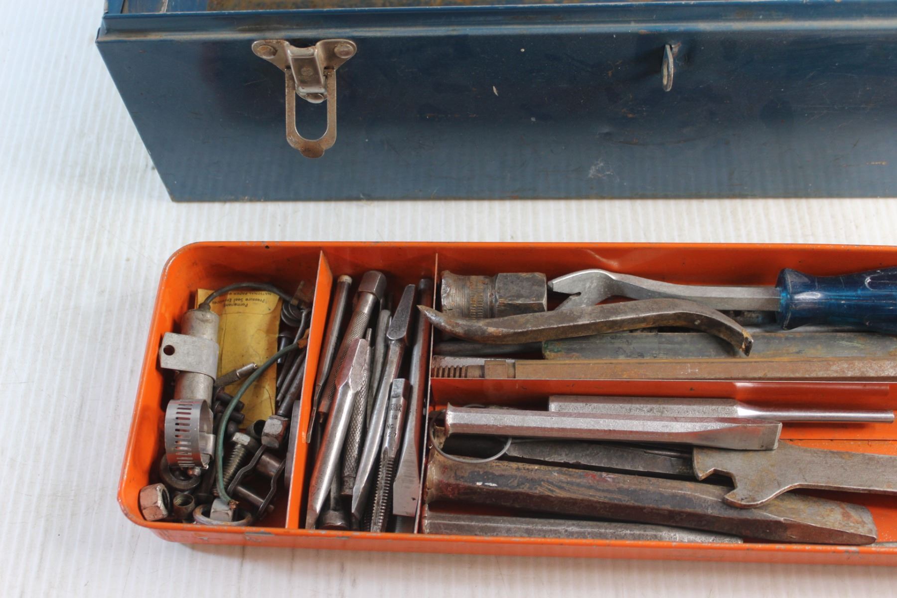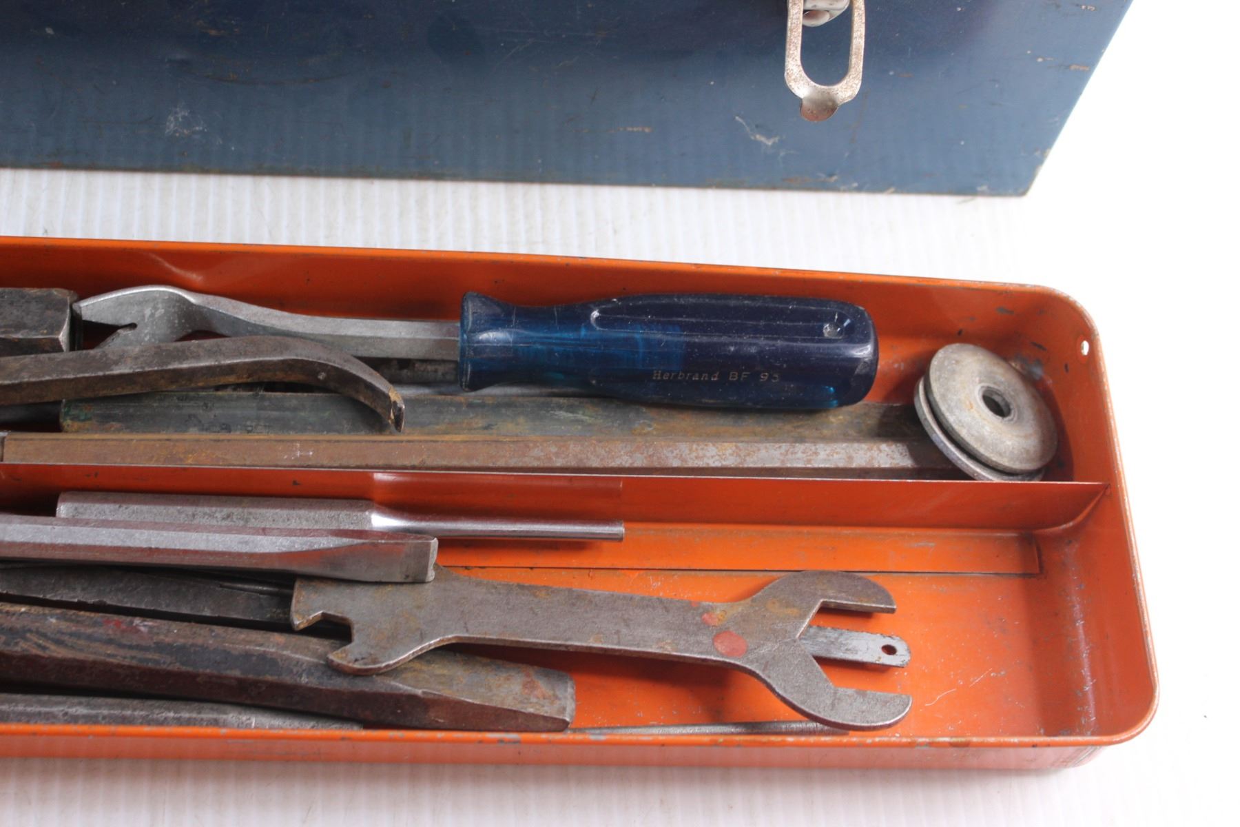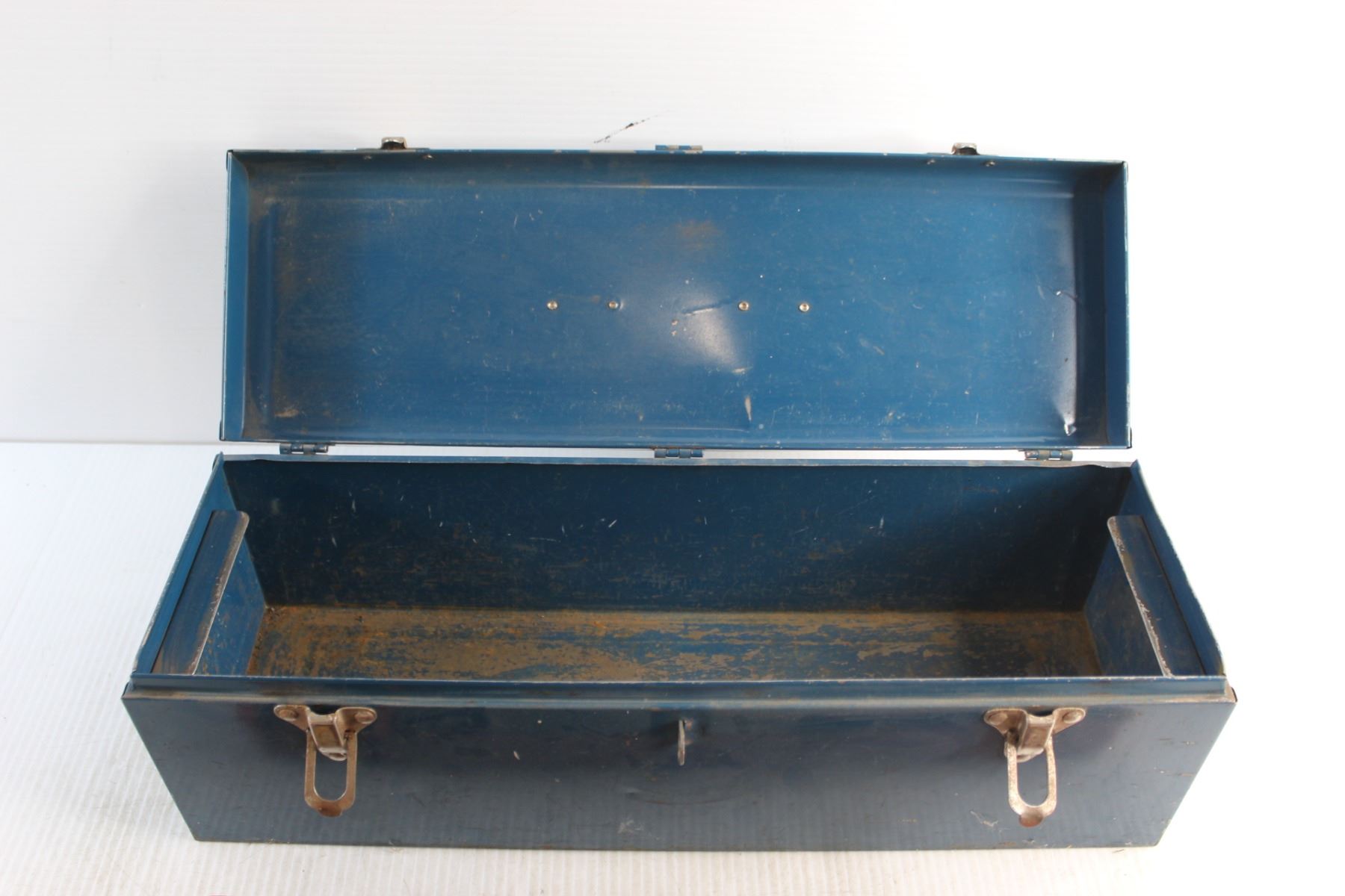 Metal Tool Box and Assorted Tools - Nail Pullers, Chisels and Wrenches