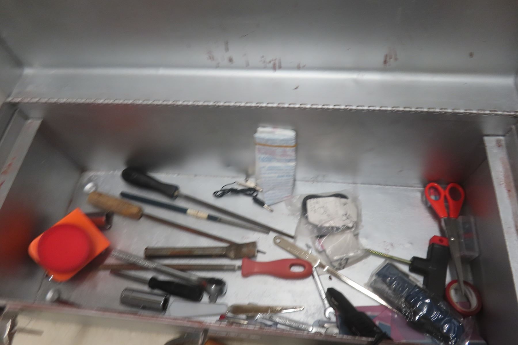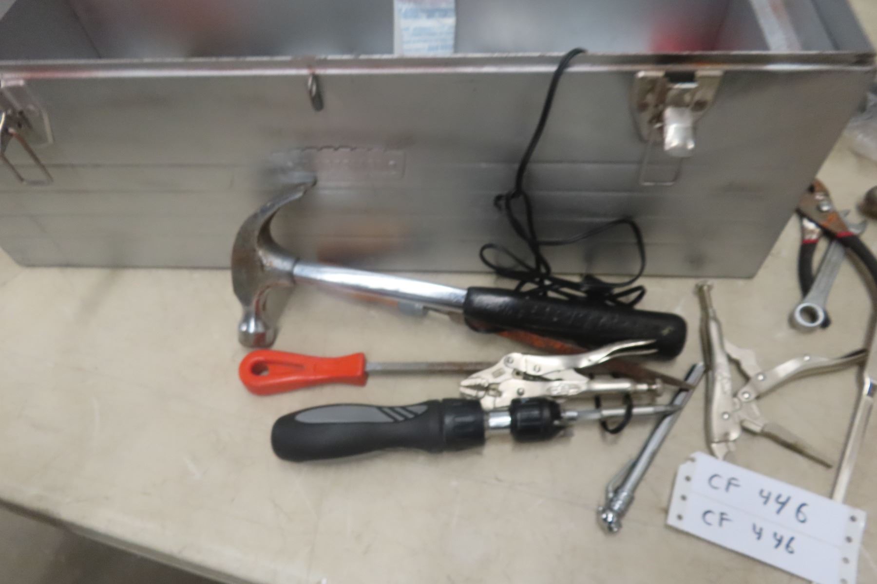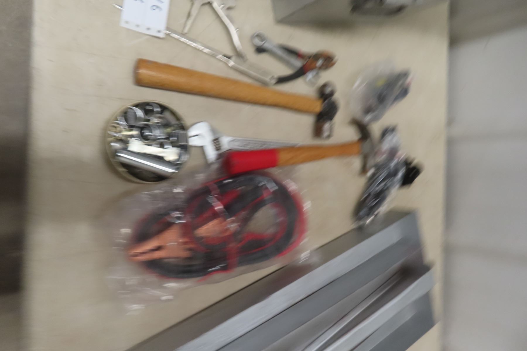 Metal Tool Box with Hammers, Booster Cable, and Assorted Tools