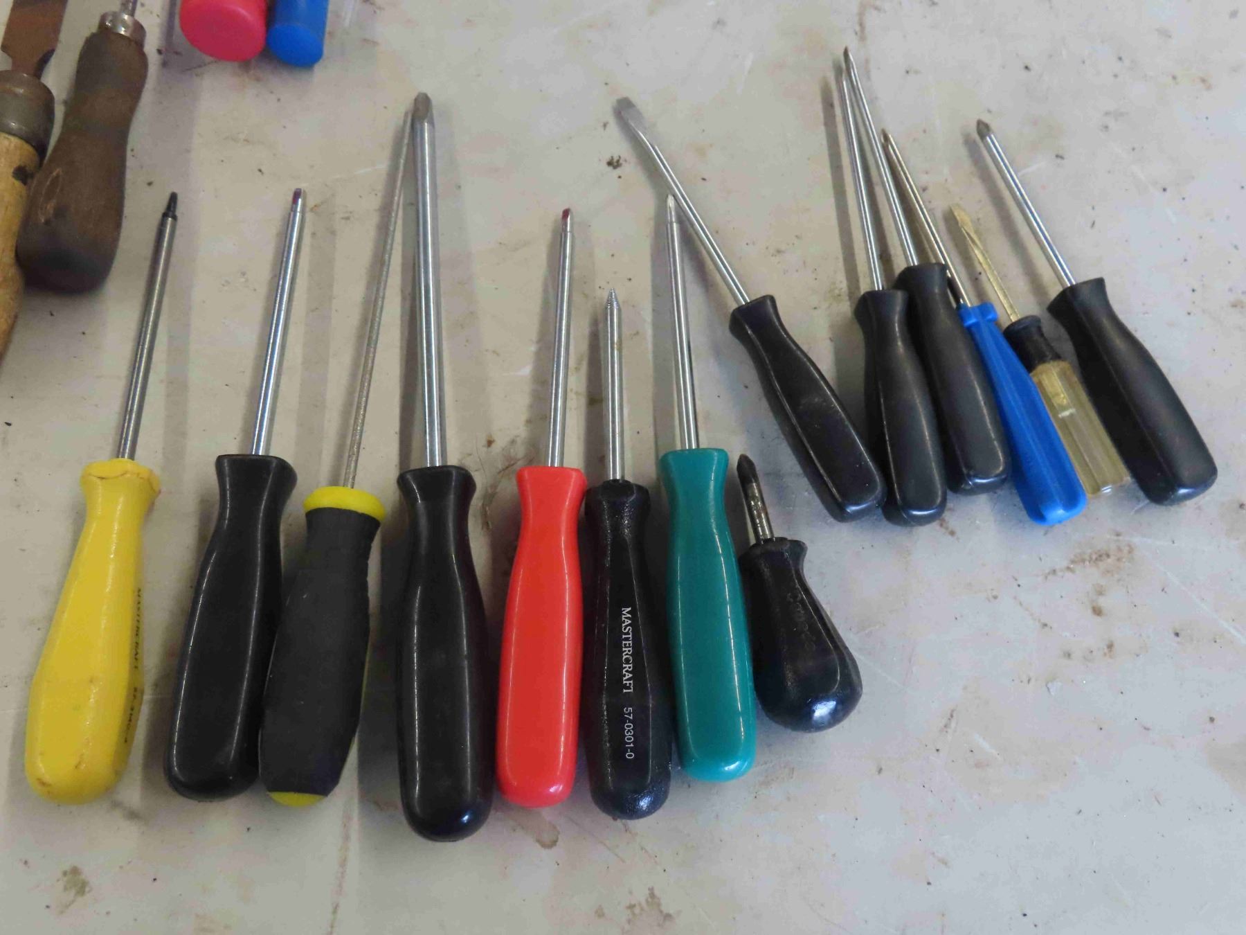 Metal Tool Box with Screwdrivers, Files, Tape Measure, New Blades, Wire Brushes & More