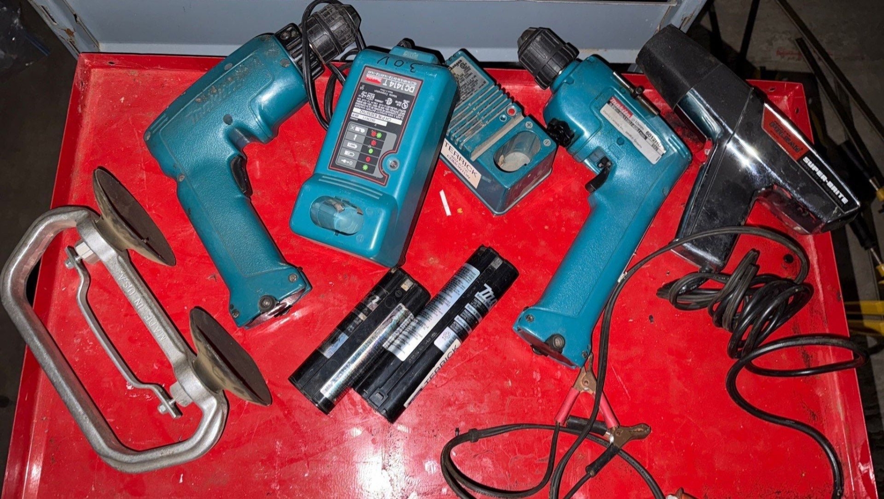 Metal Tool Cart On Casters w/ Makita 9.6 V Power Tools & More
