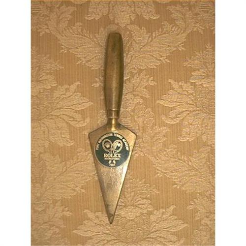 Metal Tool By Rolex International. It is shaped like a tool and looks like it is Bronze, has a green emblem on it saying Port Washington Tennis Academy Rolex International 1981 and a crown and two tennis rackets. So I guess it is some kind of trophy signed. It is 7" Long and 1 1/2" W, Hope you like it.