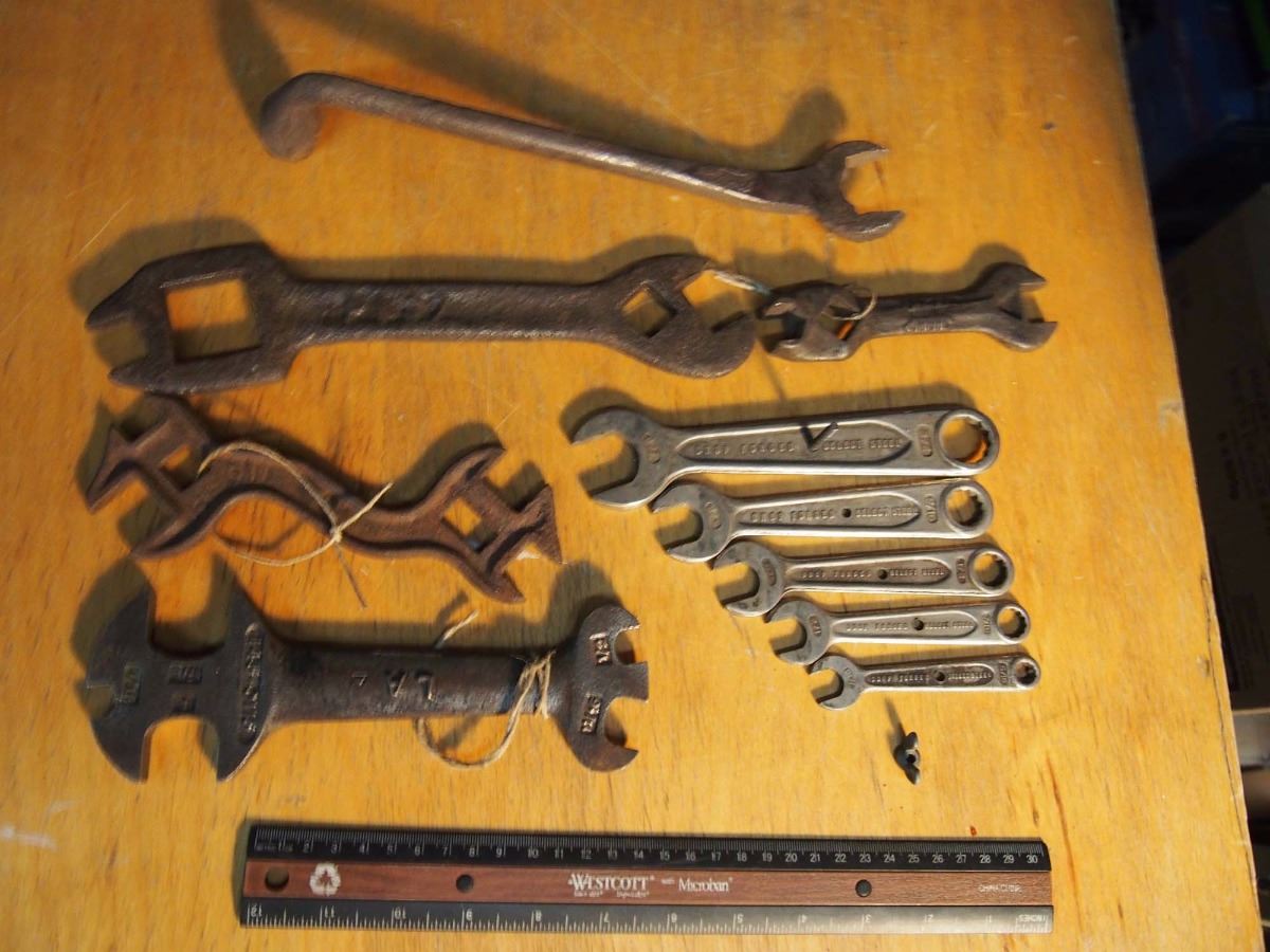Metal Tools (Combination Wrench Set, Drop Forged, Select Steel, Indestro, Ford Wrench, LA Wrench #145-0115, Massey Harris Wrench A23, IHC Wrenches)