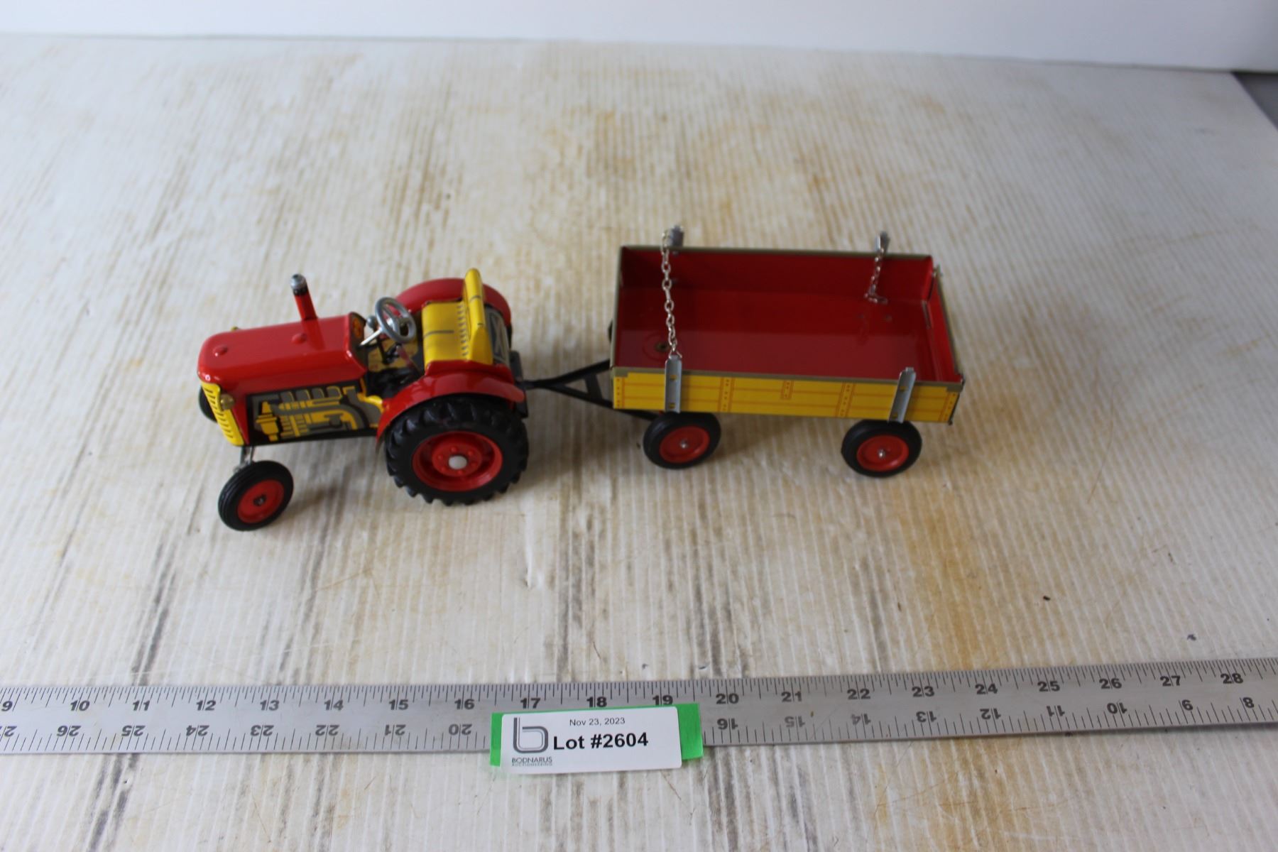 Metal Toy Tractor With Metal Wagon - European Made
