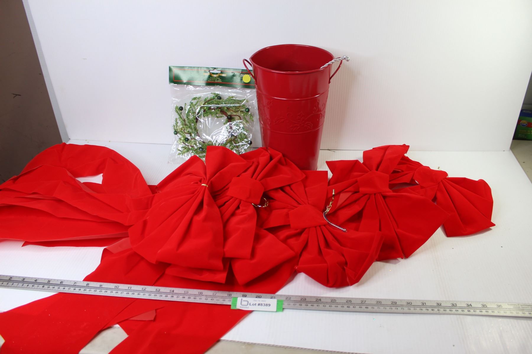 Metal Waste Can - (6) Large Red Bows - Candle Ring - Potpourri