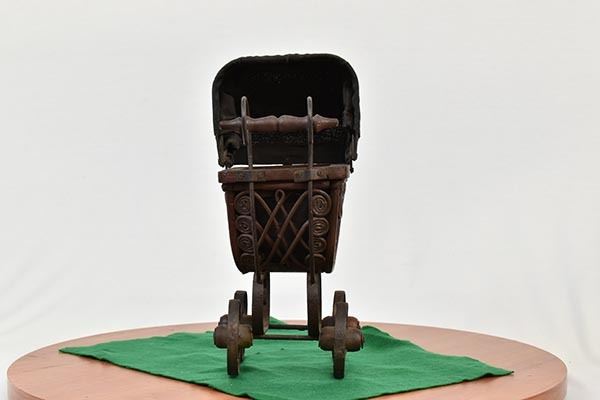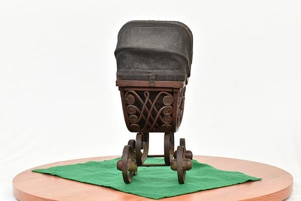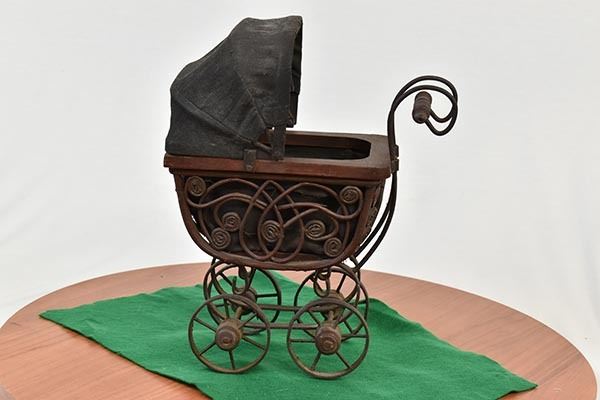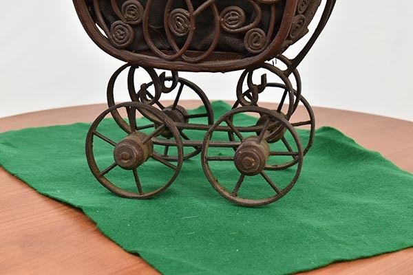 Metal and Canvas Baby Doll Buggy. This decorative item measure 5" x 9" x 11"