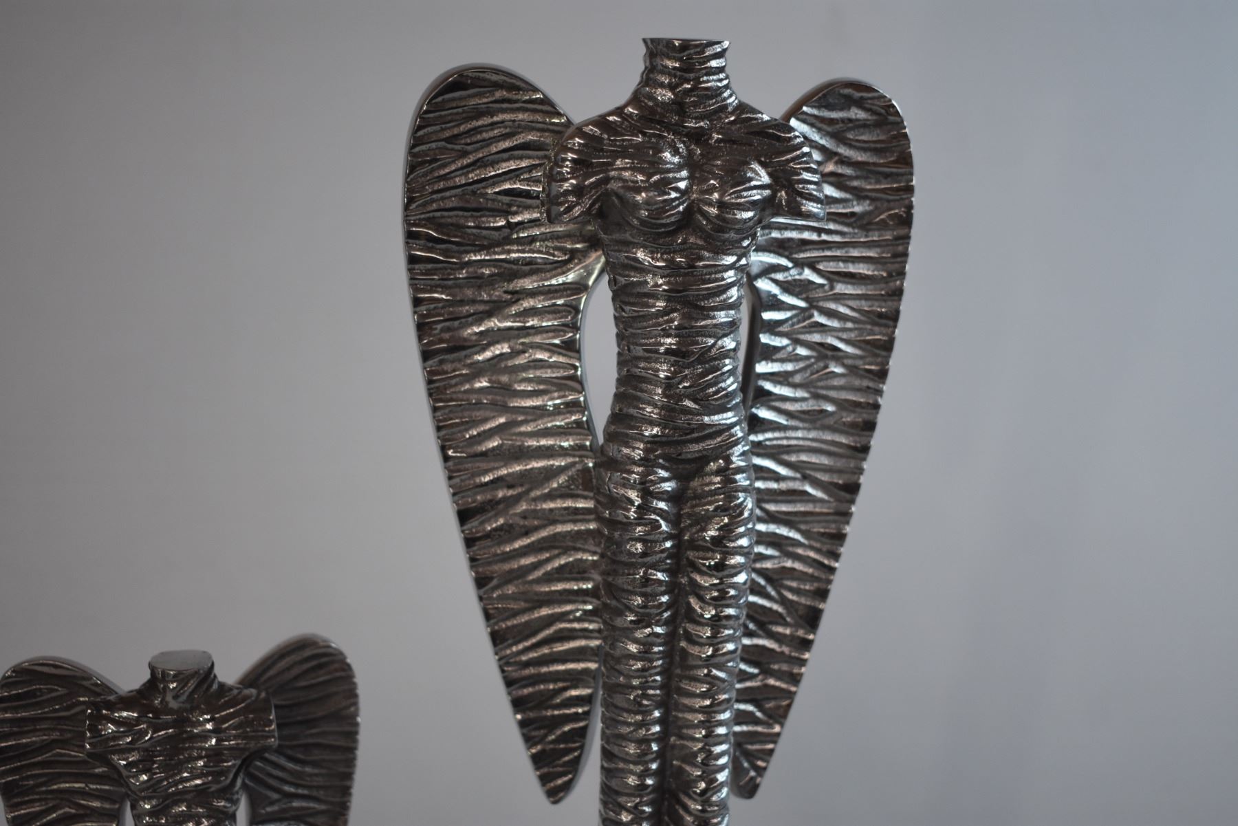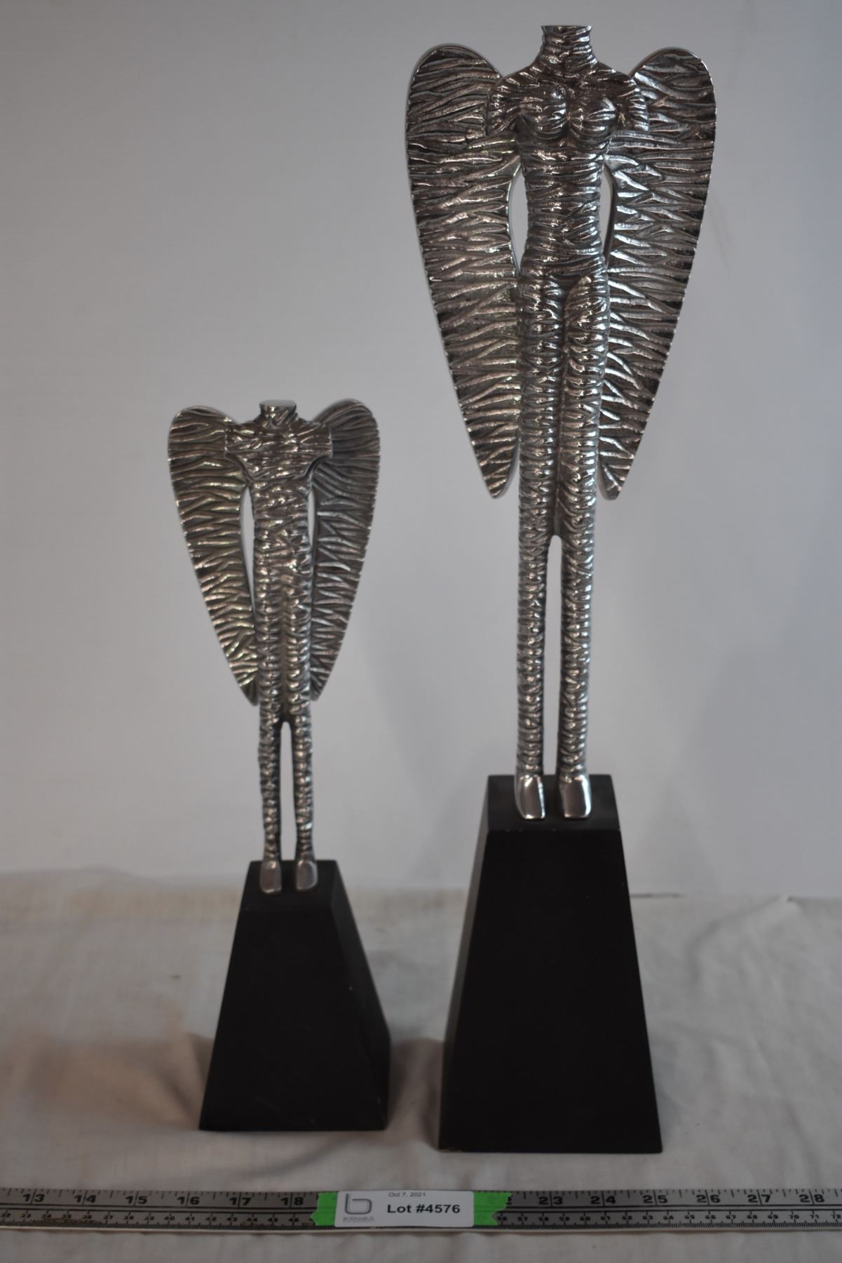 Metal and Wood Angel Statues (21" and 15" Tall)