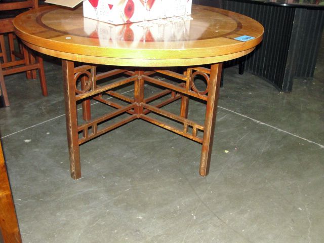 Metal based round oak inlaid table