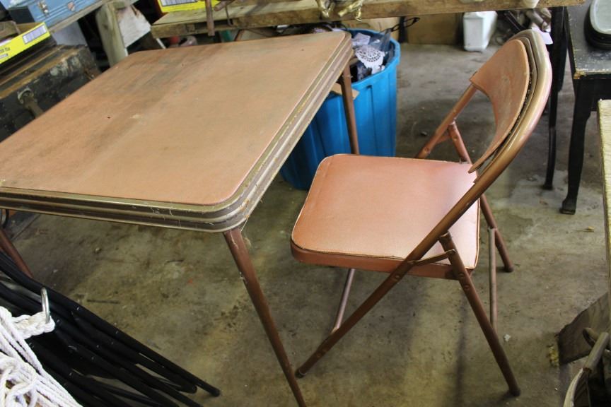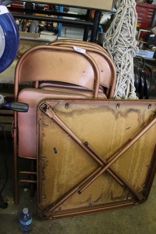 Metal folding chairs, table