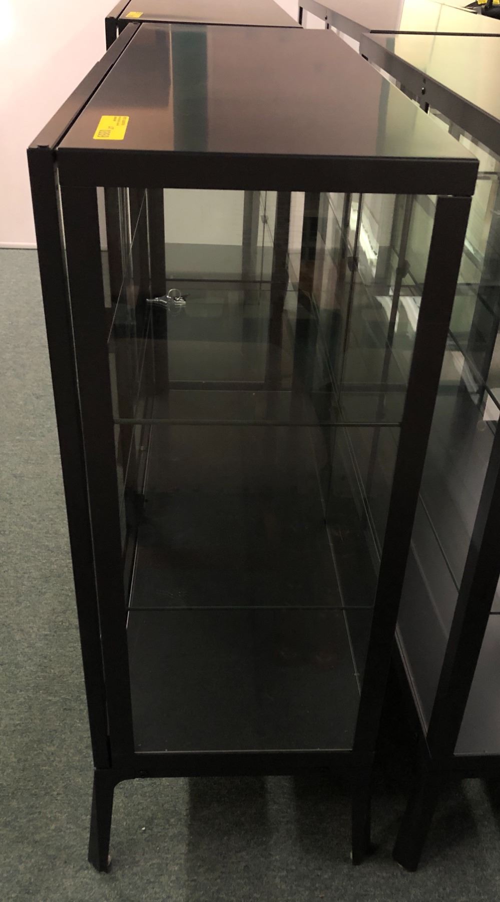 Metal & glass display case w/keys 40in W 15in D 39in H