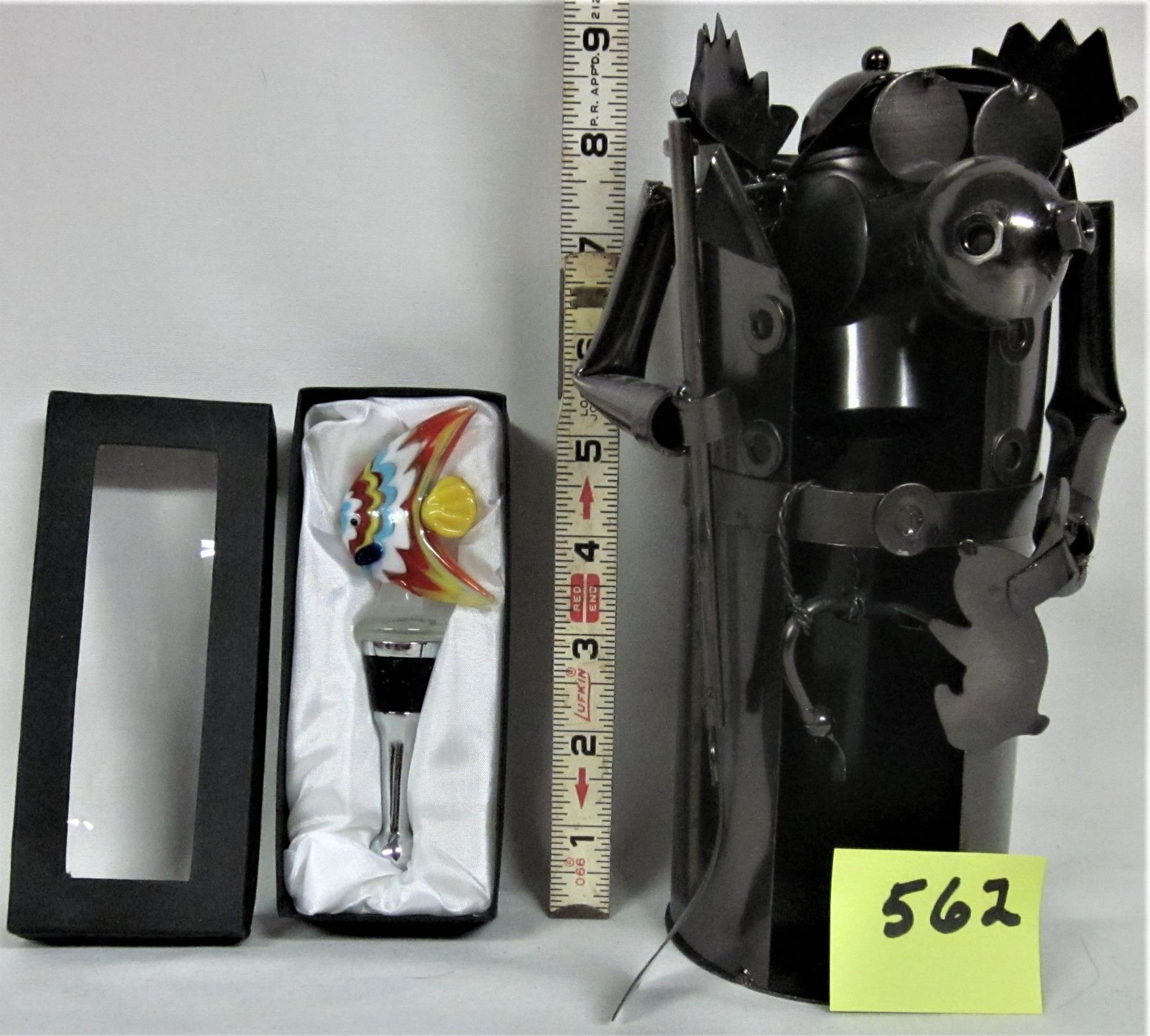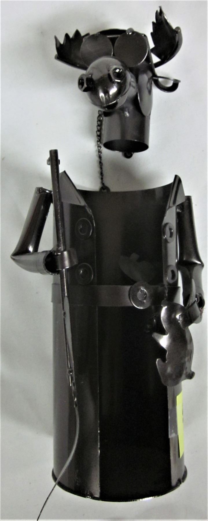 Metal moose hunter wine bottle display & boxed unique bottle stopper
