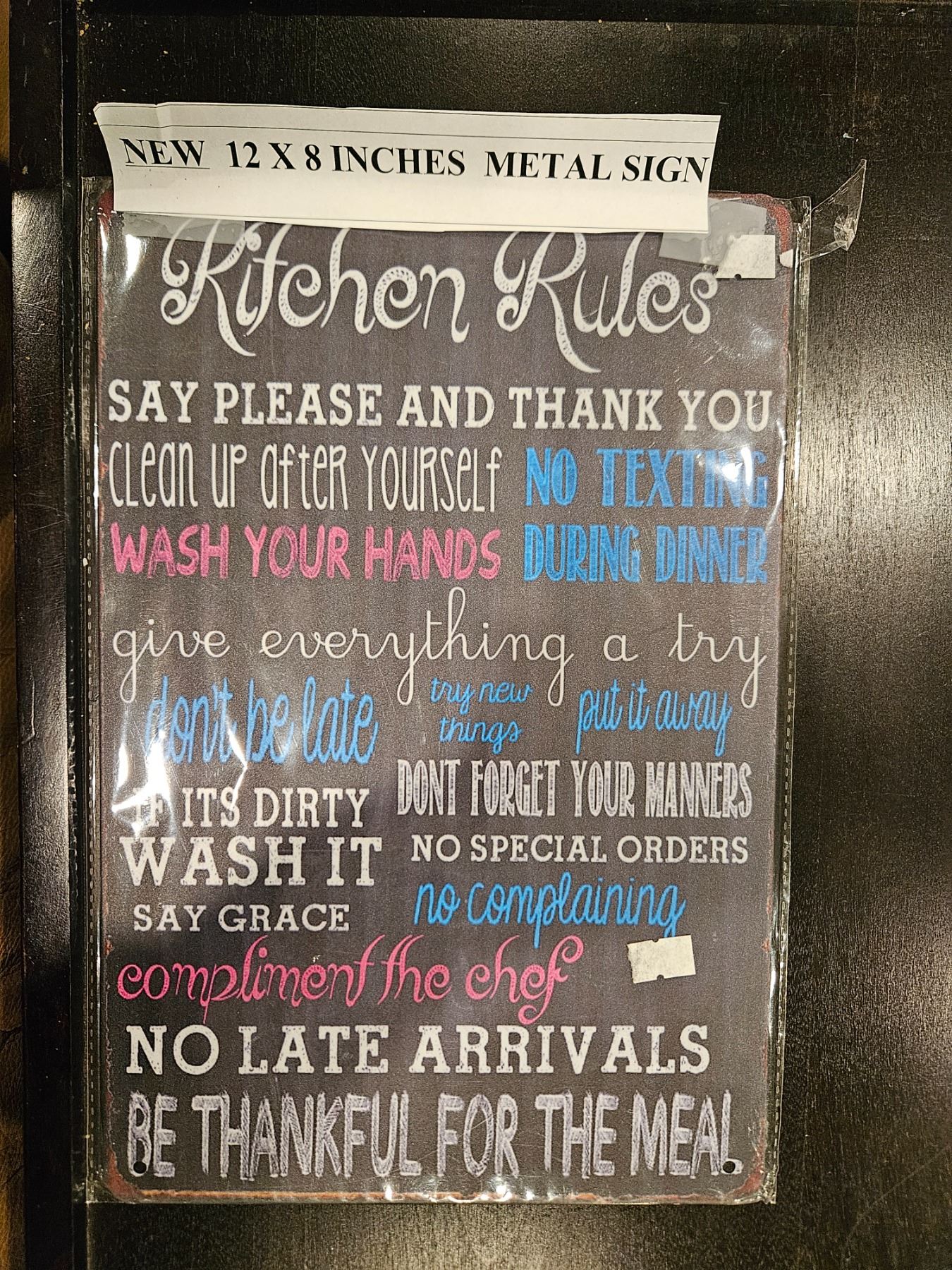 Metal sign "Kitchen rules"