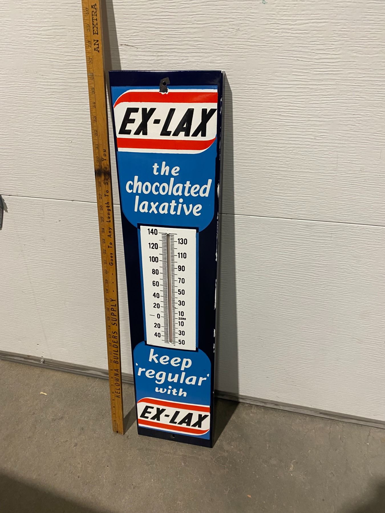 Metal sign and thermometer Ex-Lax 36" x 8 1/2 " wide