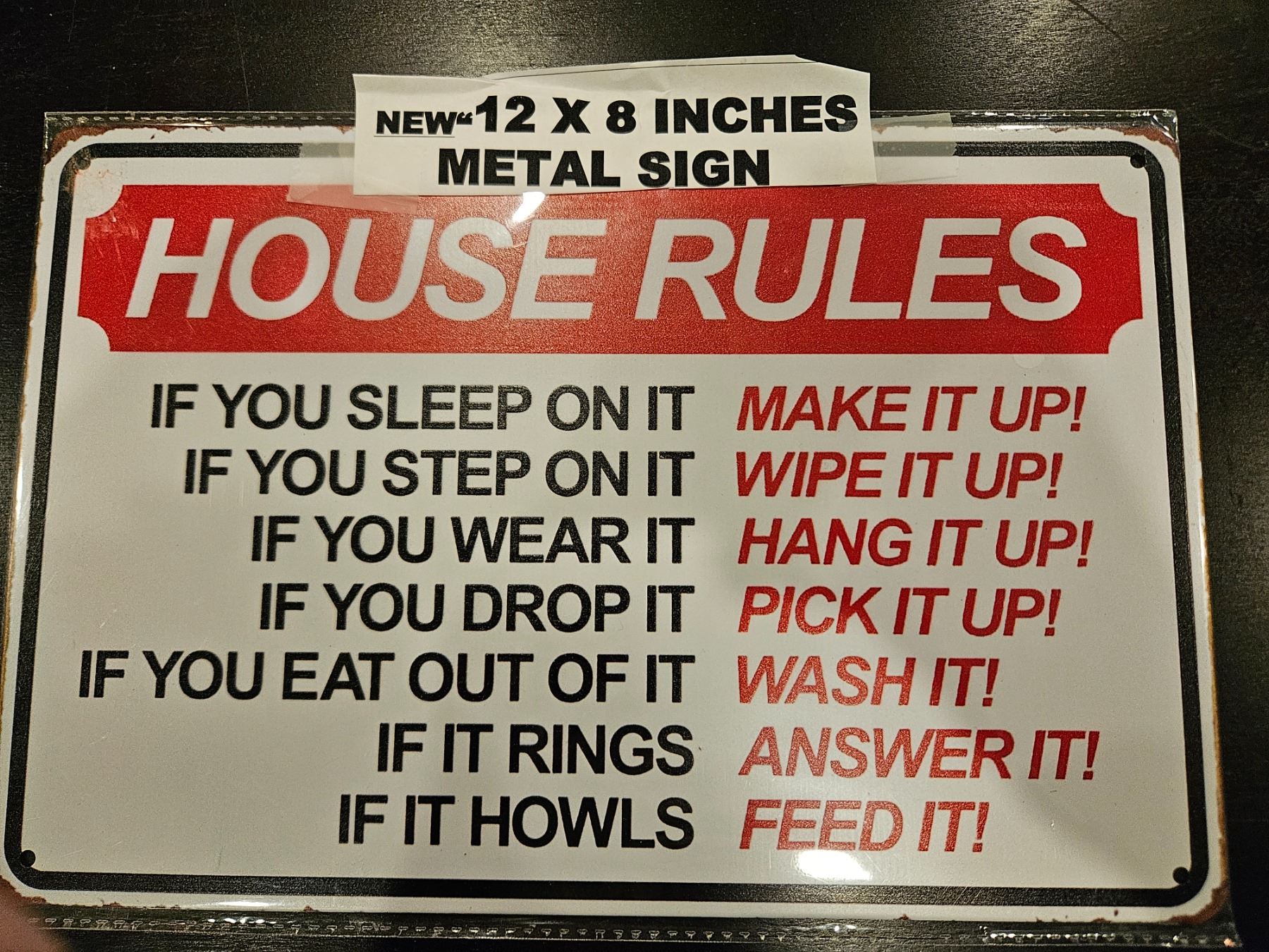 Metal sign "house rules"