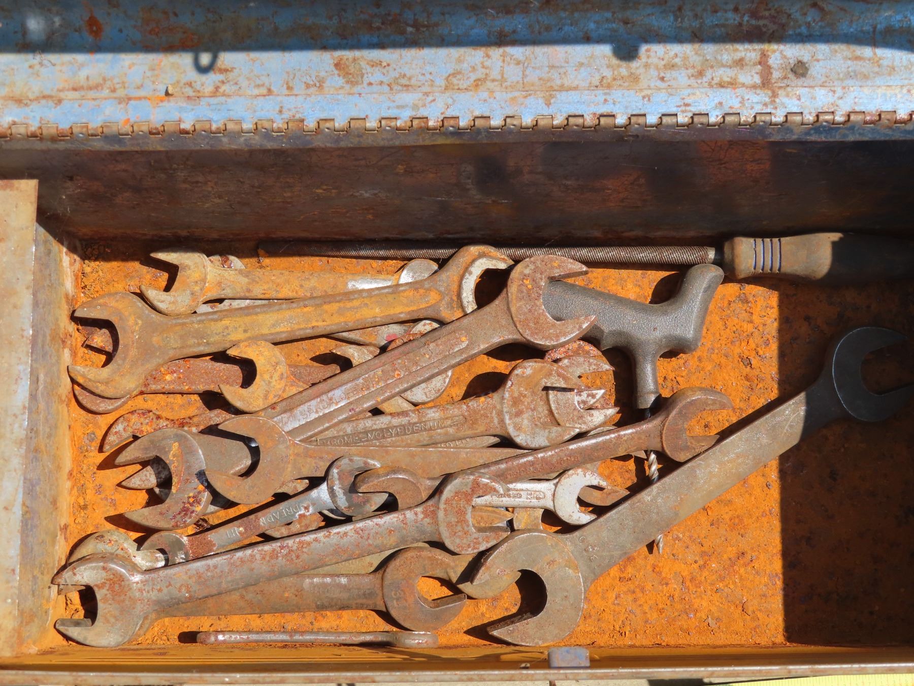 Metal tool box with assortment of Molybdenum wrenches