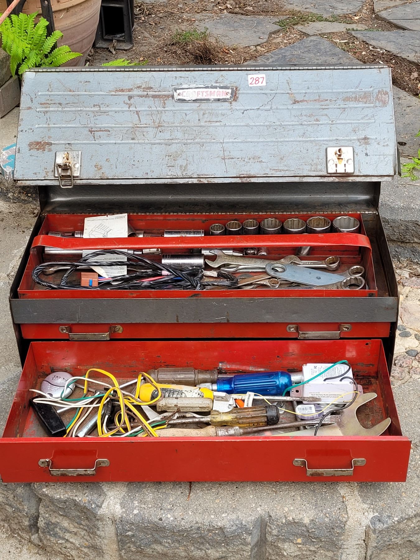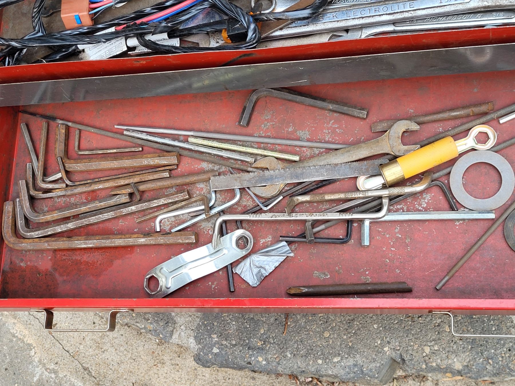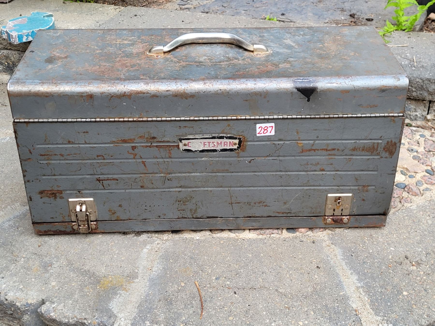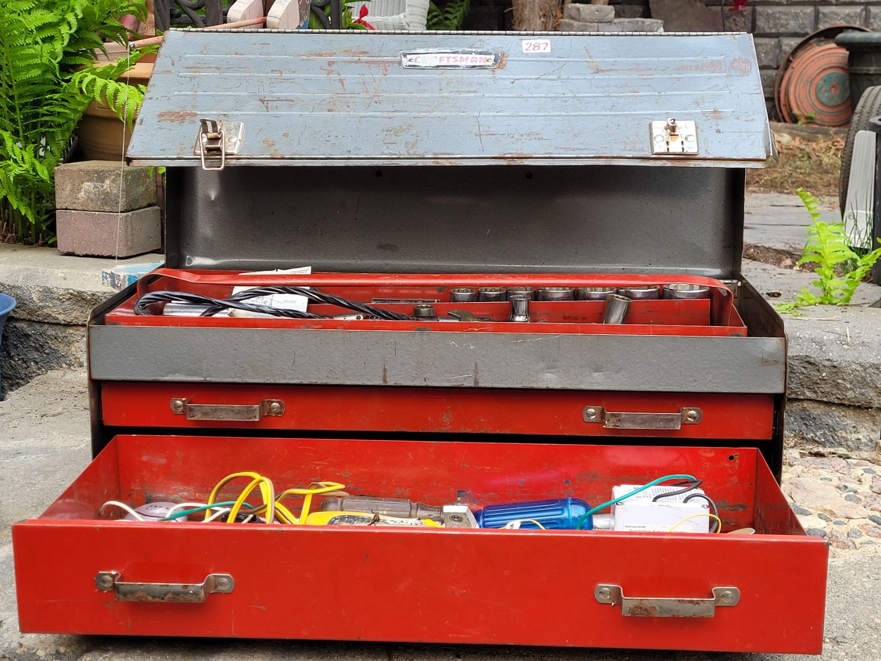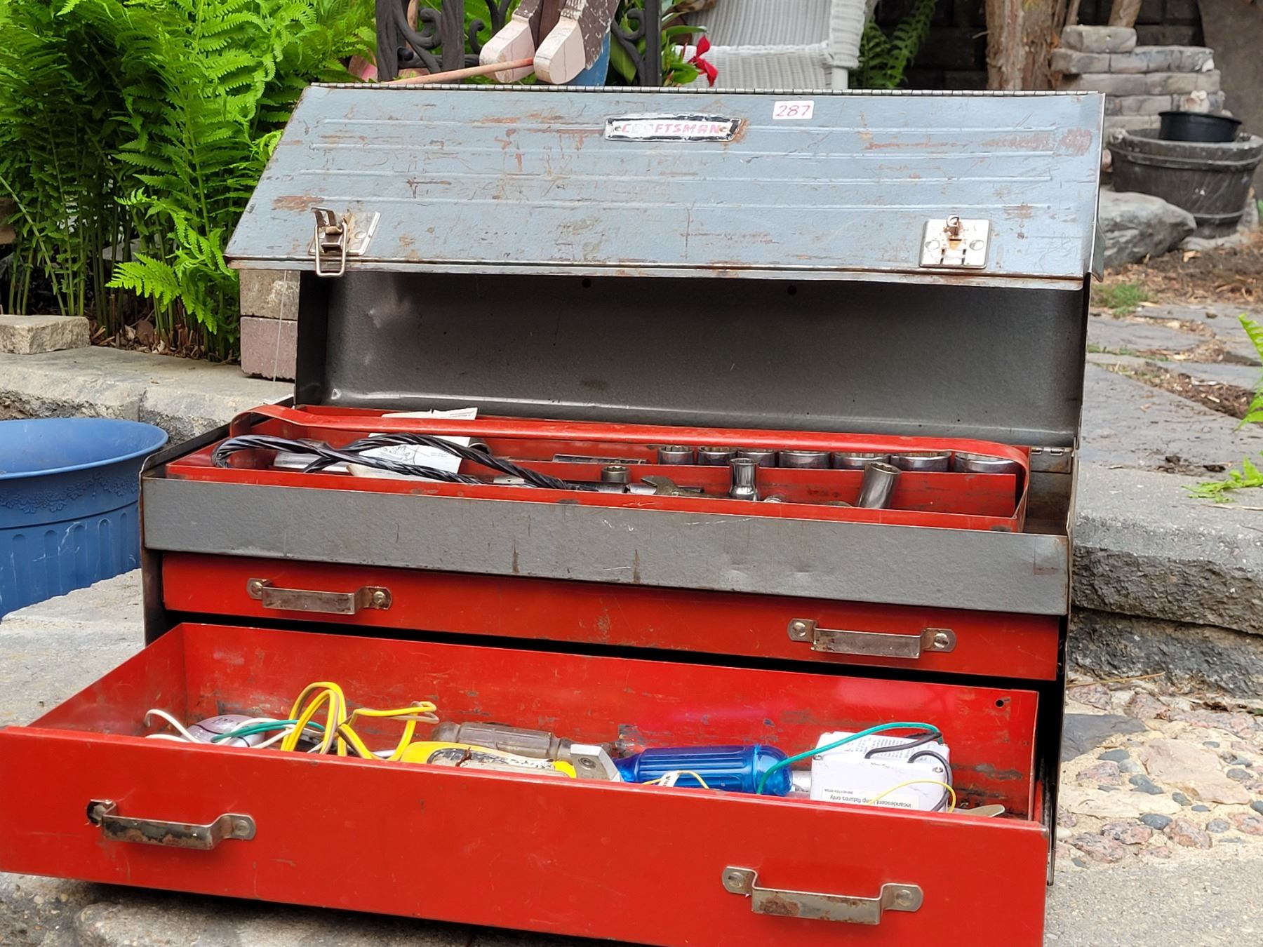 Metal tool chest with 2 drawers & removable tray. All contents.