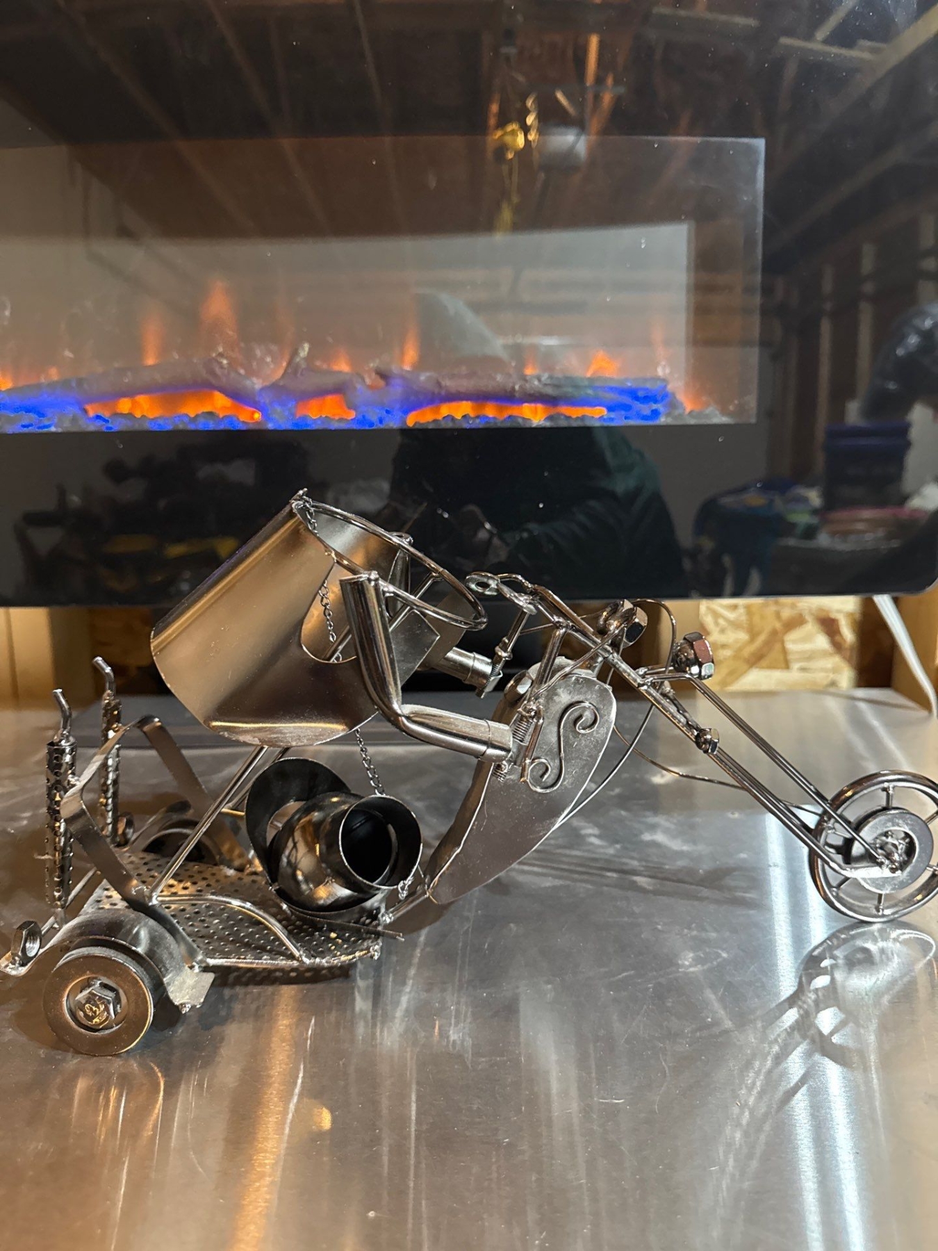 Metal trike statue. Motorcycle trike statue