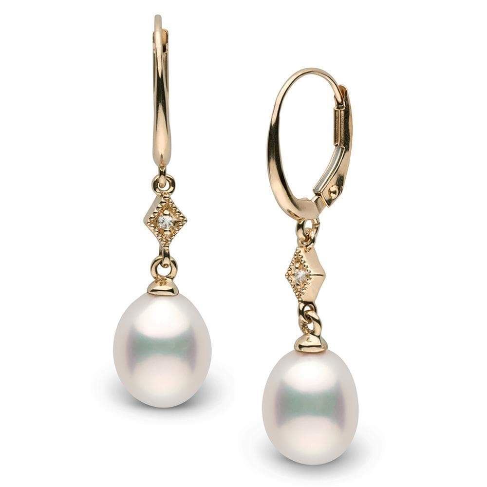 Metallic Collection White Freshwater Pearl Drop-Shape Diamond Aerie Dangle Earrings
