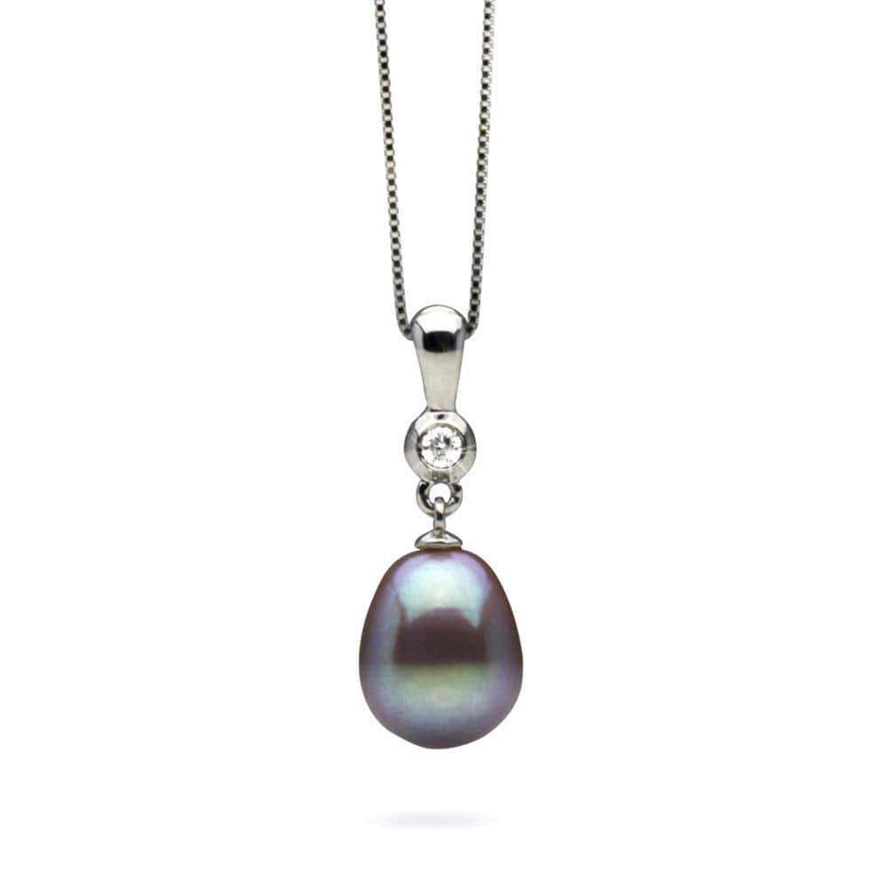 Metallic Lavender Freshwater Pearl Drop-Shape Diamond Bezel Pendant