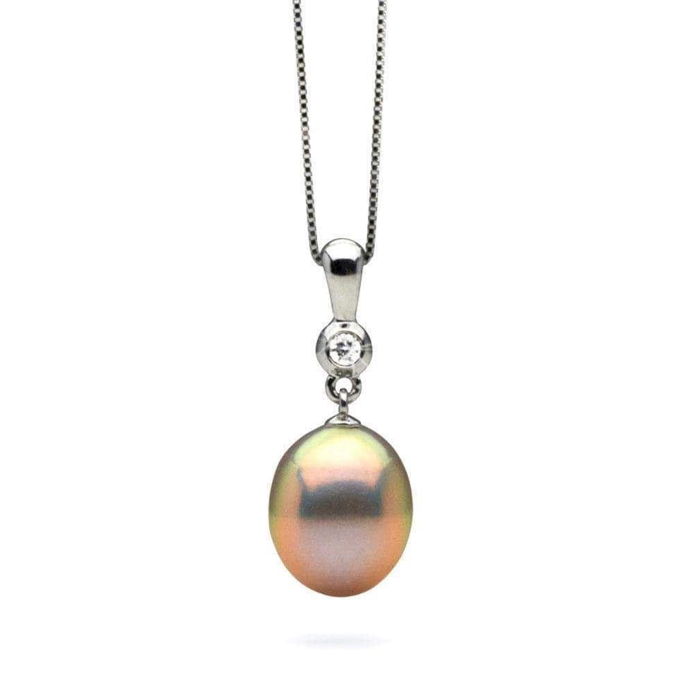 Metallic Peach Freshwater Pearl Drop-Shape Diamond Bezel Pendant