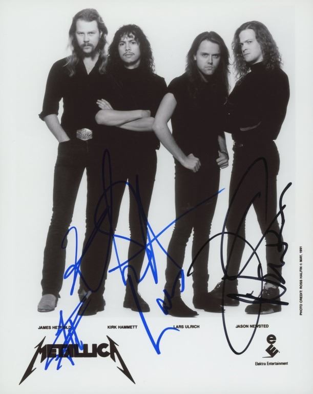 Metallica signed photo autographed by Lars Ulrich, Kirk Hammett, James Hetfield and Jason Newsted. PSJ265