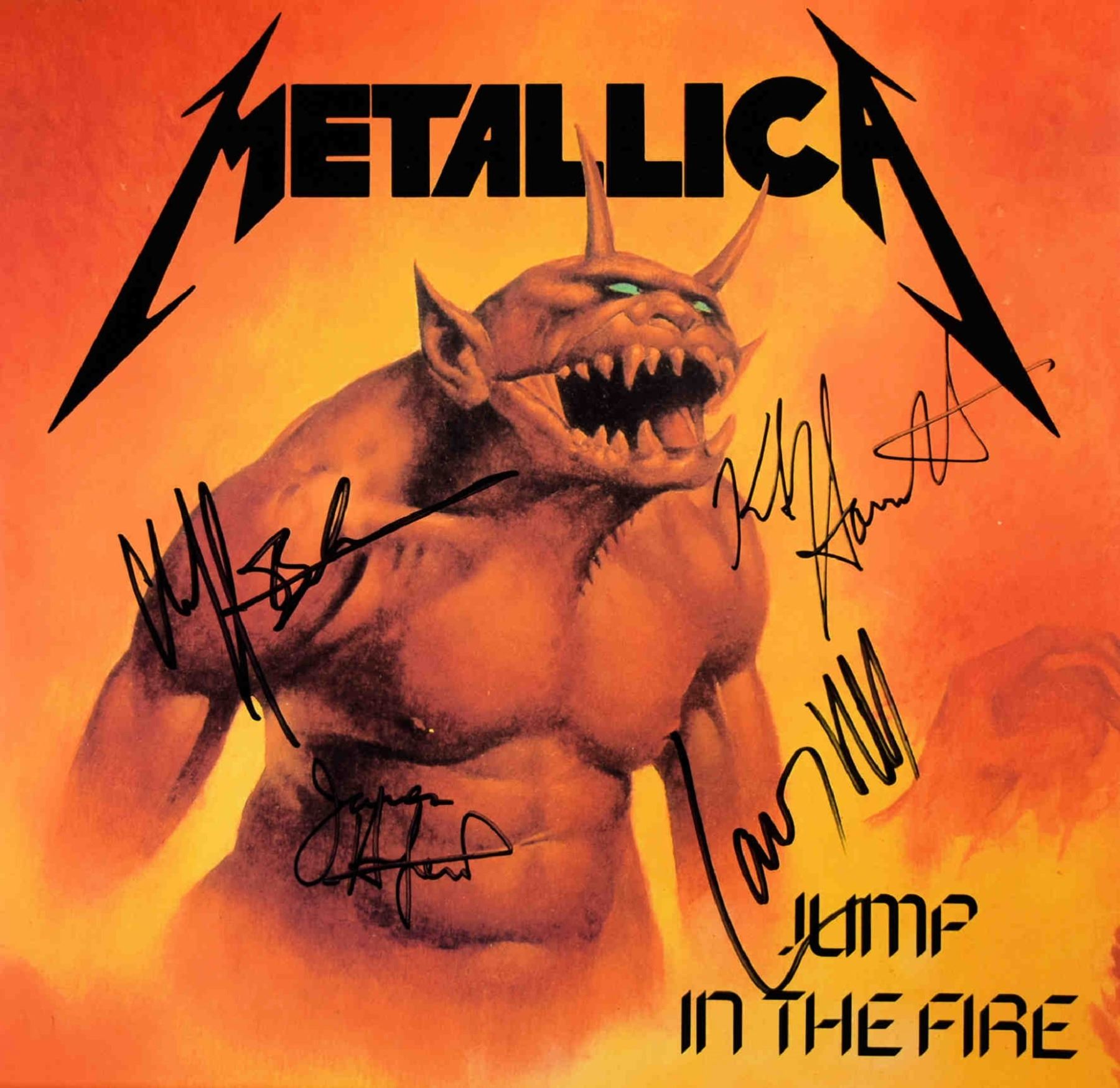 12 Inch Single from the Album Kill Em All which includes the Songs Jump in the Fire, Seek and Destroy & Phantom Lord. Signed: Lars Ulrich, Kirk Hammett, Cliff Burton and James Hetfield
