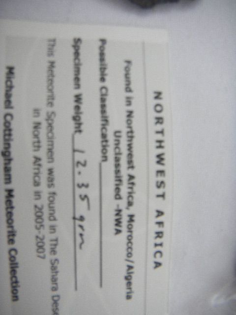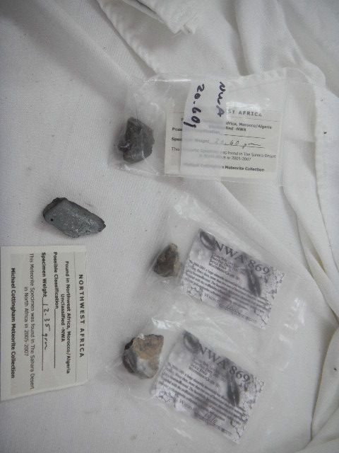 Four Morocco/Algeria Meteorites. Weights 20.60 Grams, 12.35 grams, 19 and 16 grams. Individual weights. Items have documentations