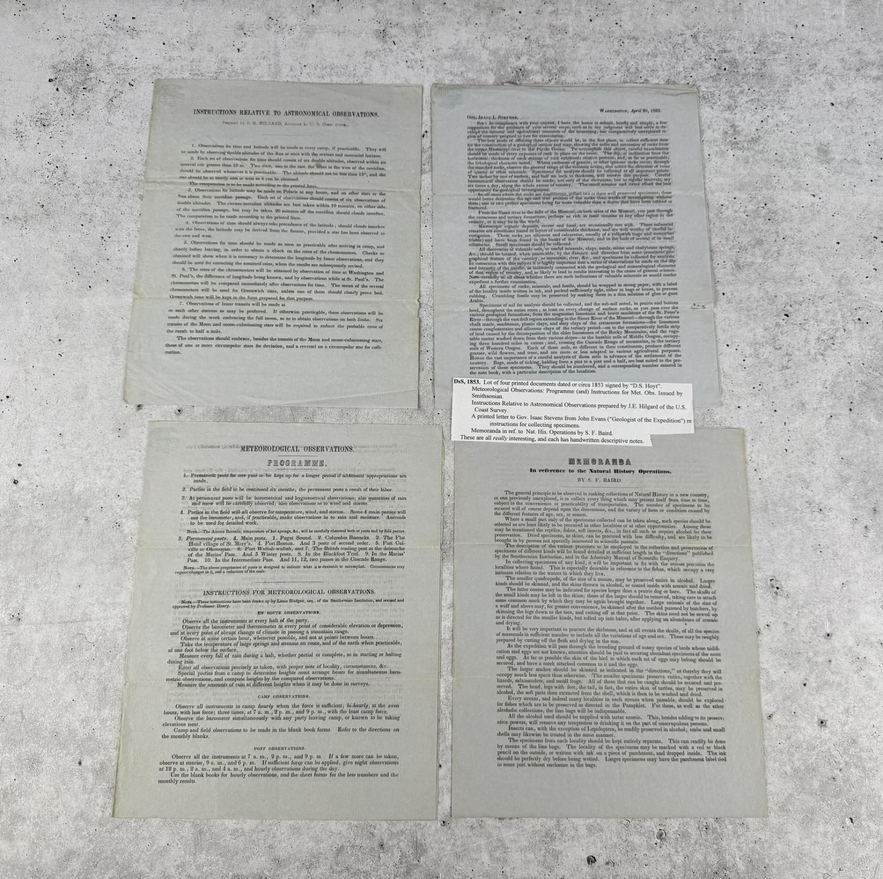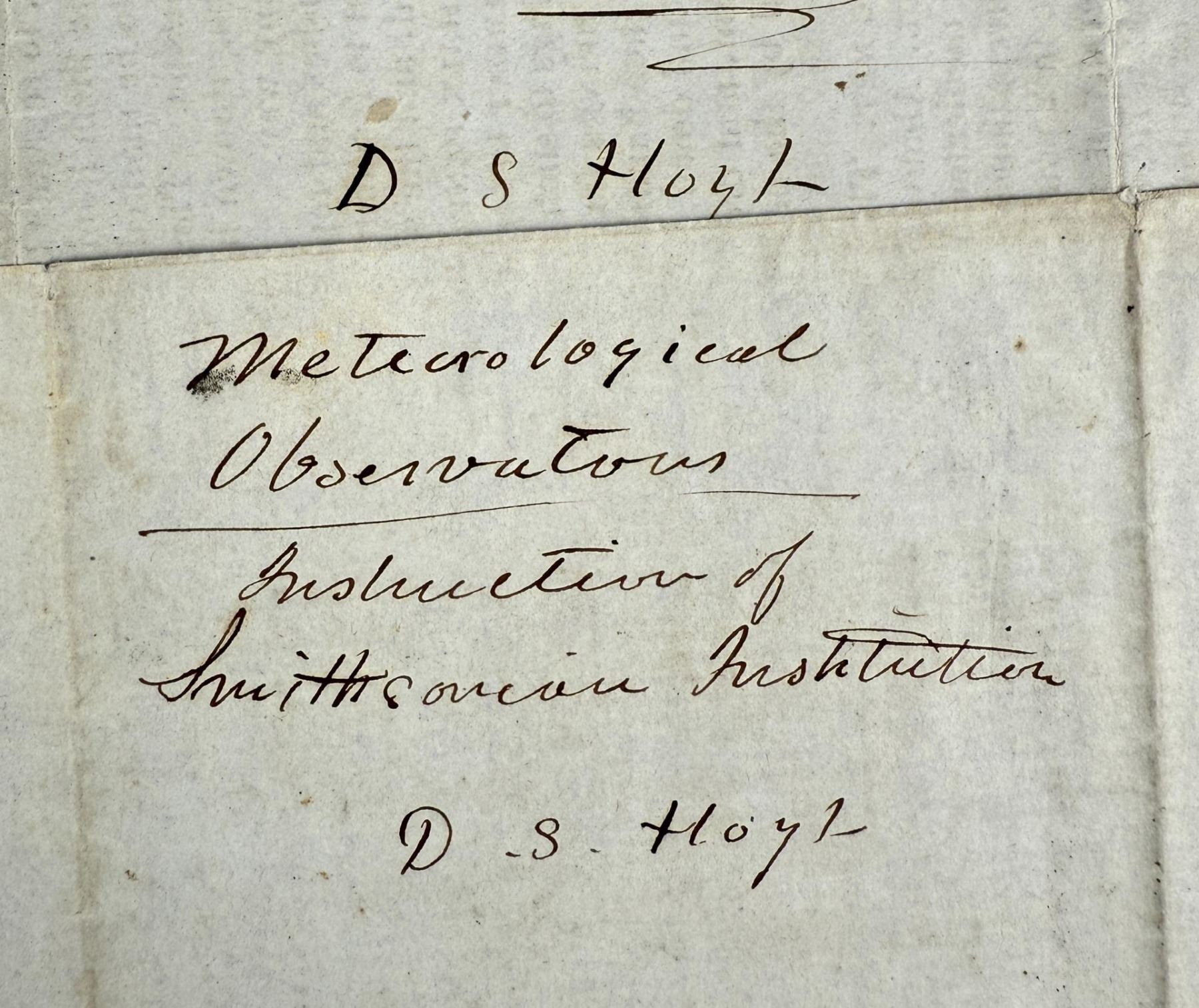 Meteorological Observations, Astronomical Observations, and more. Signed by D.S. Hoyt Smithsonian Institution.
